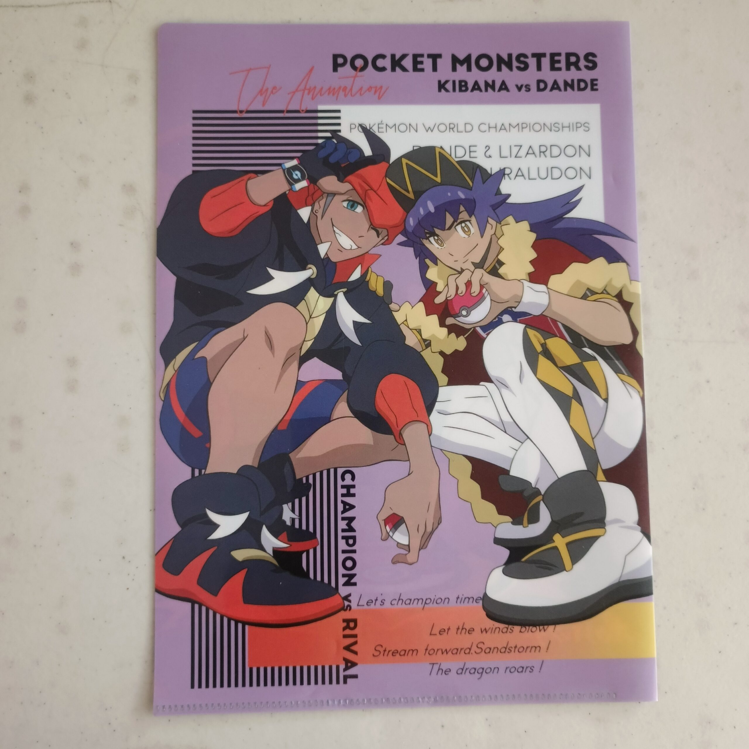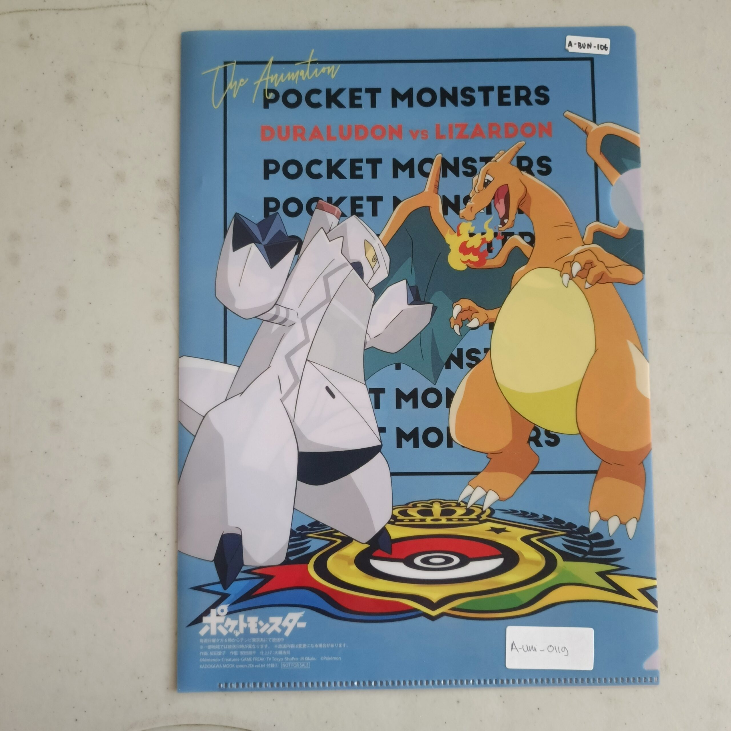 Ini adalah clear file (map plastik bening) bekas bergambar Pokemon, menampilkan pertarungan epik antara Duraludon dan Lizardon (Charizard dalam bahasa Inggris/Jepang). Clear file ini merupakan barang koleksi yang berguna untuk menyimpan dokumen, kertas, atau barang-barang kecil lainnya dengan aman dan bergaya.