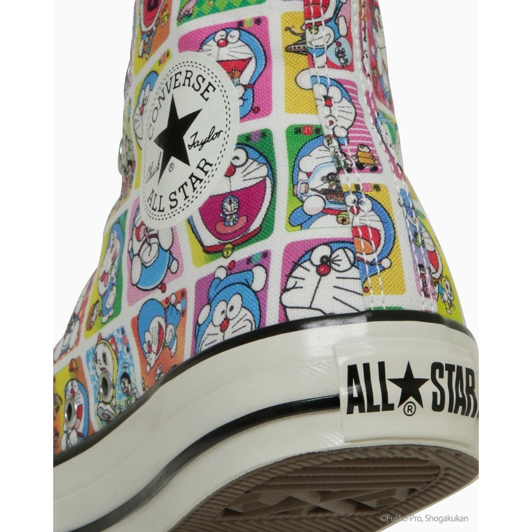 Rayakan 55 tahun serial manga legendaris dengan sepatu edisi spesial Converse All Star Aged Doraemon Hi. Desain eksklusif ini menampilkan ilustrasi dari 45 sampul volume Tentomushi Comics “Doraemon”, menciptakan tampilan penuh warna dan bersejarah di seluruh bagian upper sepatu.