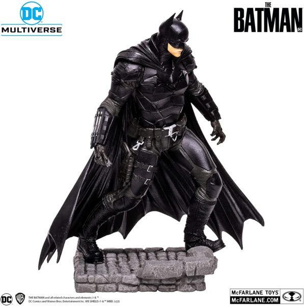 The Batman’s lineup of the movie “THE BATMAN” is presented by McFarlane Toys, a 12-inch posted statue that is renowned for its high modeling and quality. Introducing Batman (version 2). Batman from the Batman is a 3D statue of about 11.8 inches (30 cm) in height. From the armor and gauntlets, the bat run held in the right hand, and the black capes are reproduced with attention to detail and attention to detail. The base has a diorama style with a cobblestone design. The packaging is a stylish window box that can be displayed as is.