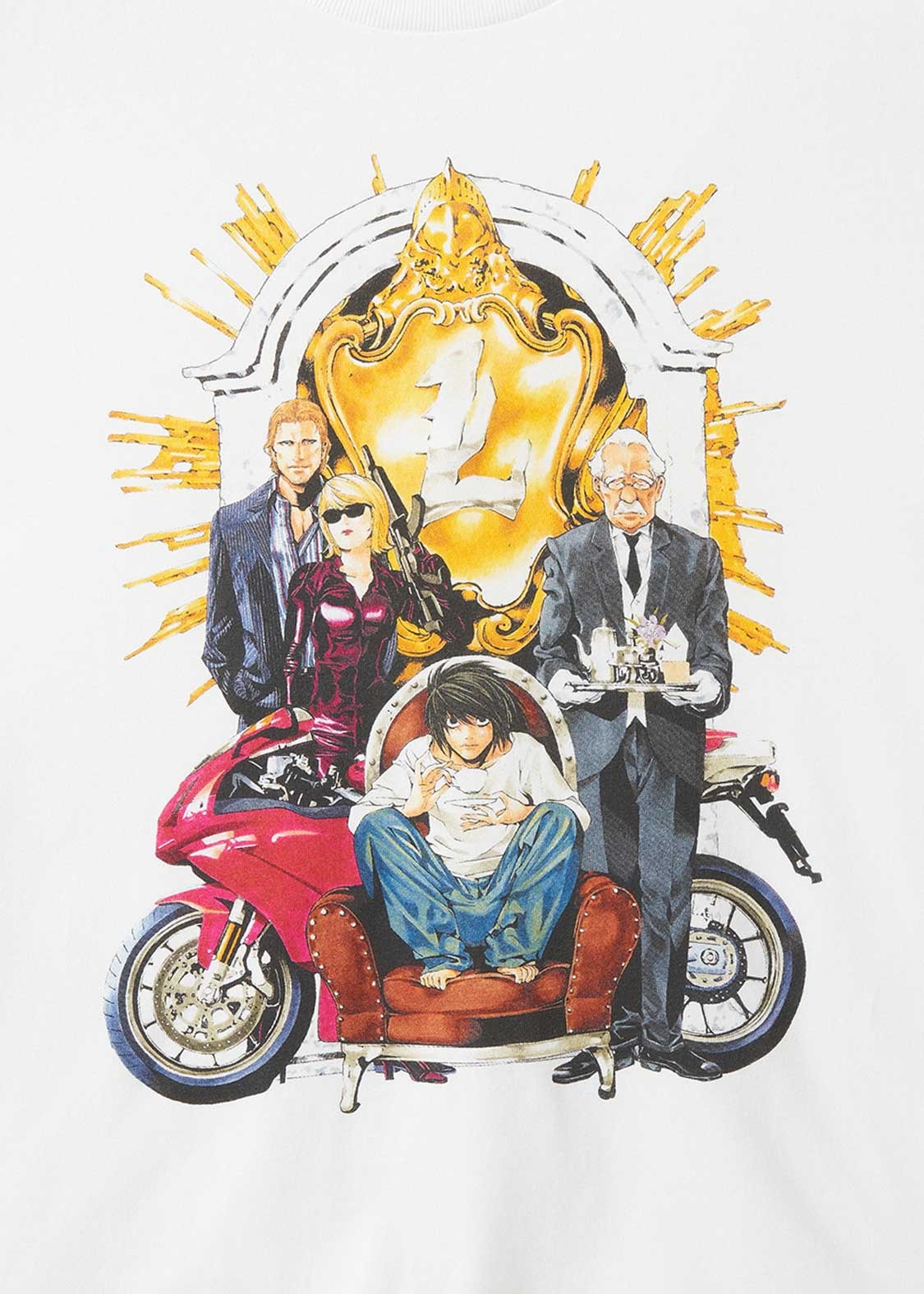 Kenakan kaos L Friends dari Graniph dan rayakan lingkaran kepercayaan L di dunia DEATH NOTE! Desain kaos ini menampilkan Watari, Aiber, dan Wedy, individu-individu kunci yang membantu L dalam penyelidikannya.