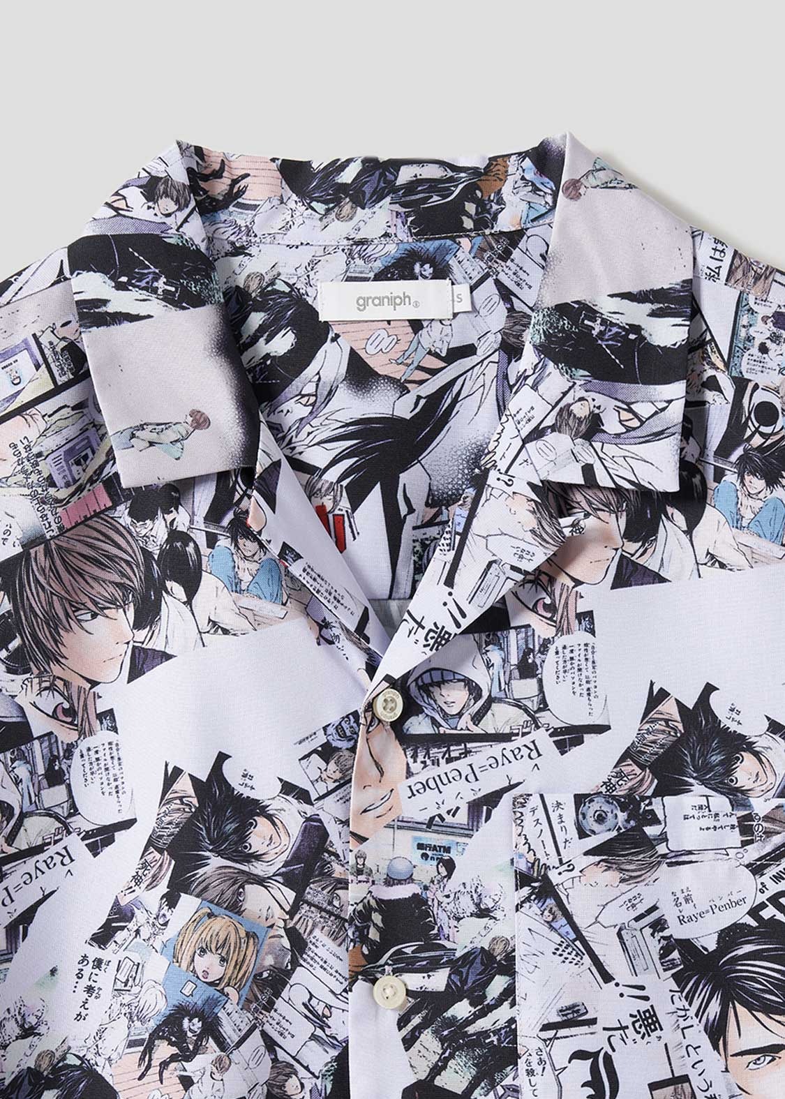 Graniph DEATH NOTE – Memory Pattern Big Silhouette Open Collar Shirt
