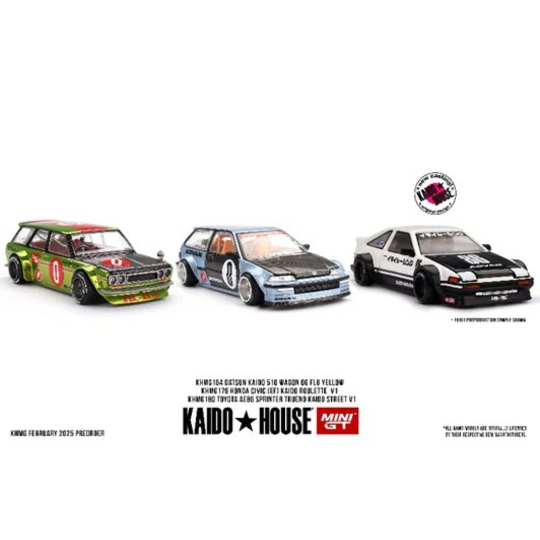 Diecast MINI-GT Honda Civic EF hadir dalam skala 1/64 dengan desain unik dari KAIDO HOUSE x MINI GT yang diproduksi oleh desainer ternama JUN IMAI. Versi limited edition ini juga memiliki varian chase car yang hanya dapat diketahui setelah dibuka.