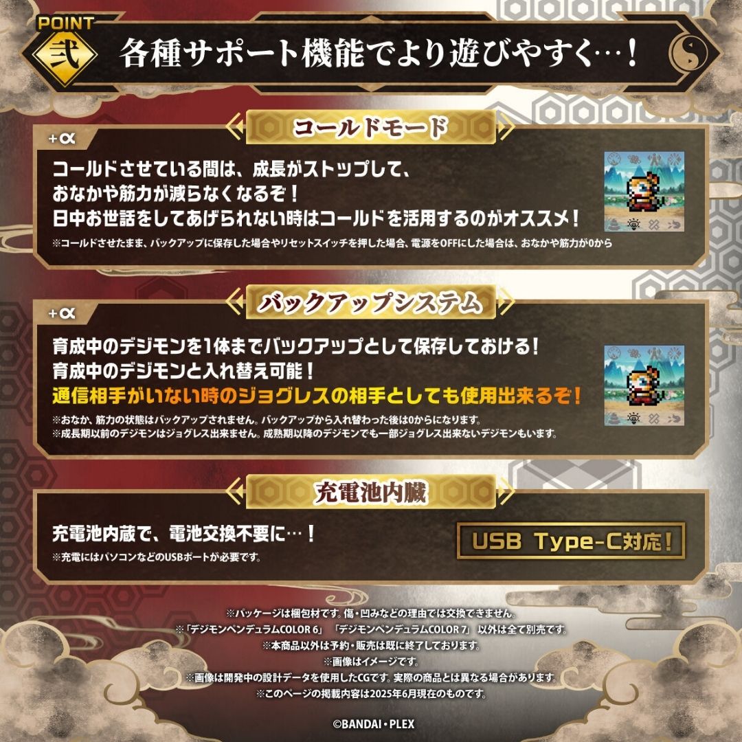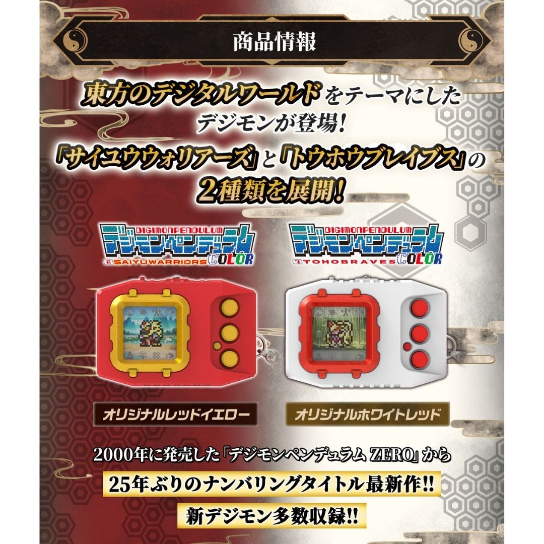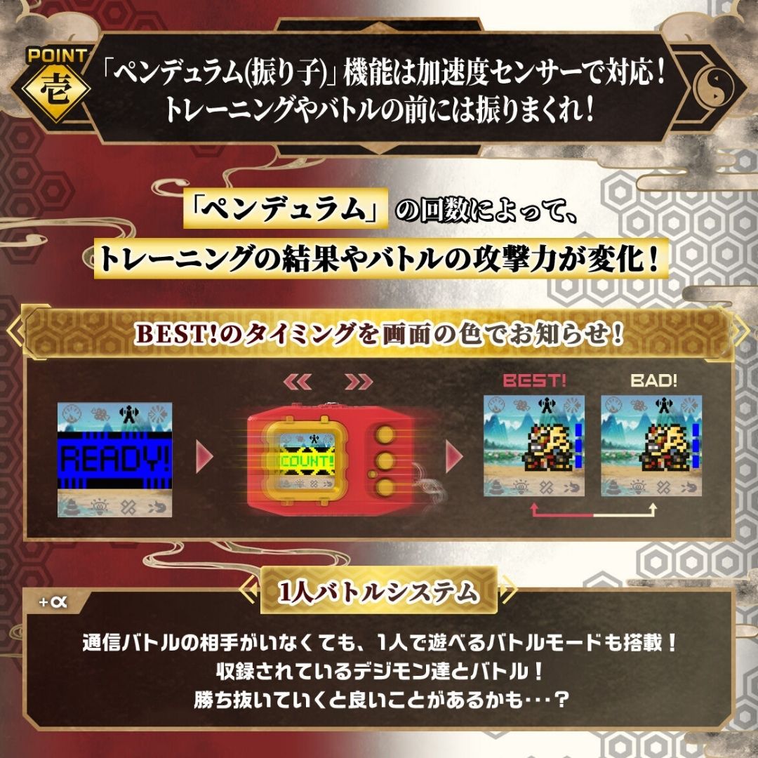 Digivice Digimon Pendulum COLOR hadir dengan layar warna dan baterai isi ulang. Menampilkan 31 Digimon unik dari mitologi Jepang dan Tiongkok, serta dilengkapi sensor ayunan untuk pelatihan dan pertarungan.