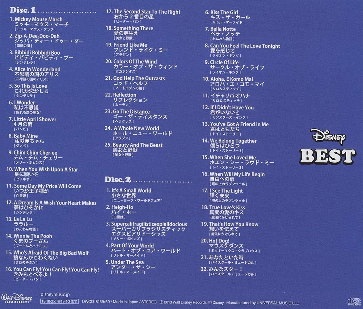 Selami keajaiban musik Disney dalam versi Bahasa Jepang! Disney Best Japanese Edition adalah kompilasi terkuat dari Walt Disney Records, menampilkan 46 lagu paling terkenal dari masa lalu hingga kini, semuanya dari film-film pemenang penghargaan. Dua CD ini adalah panduan lengkap Anda untuk menikmati seluruh kekayaan musik Disney.