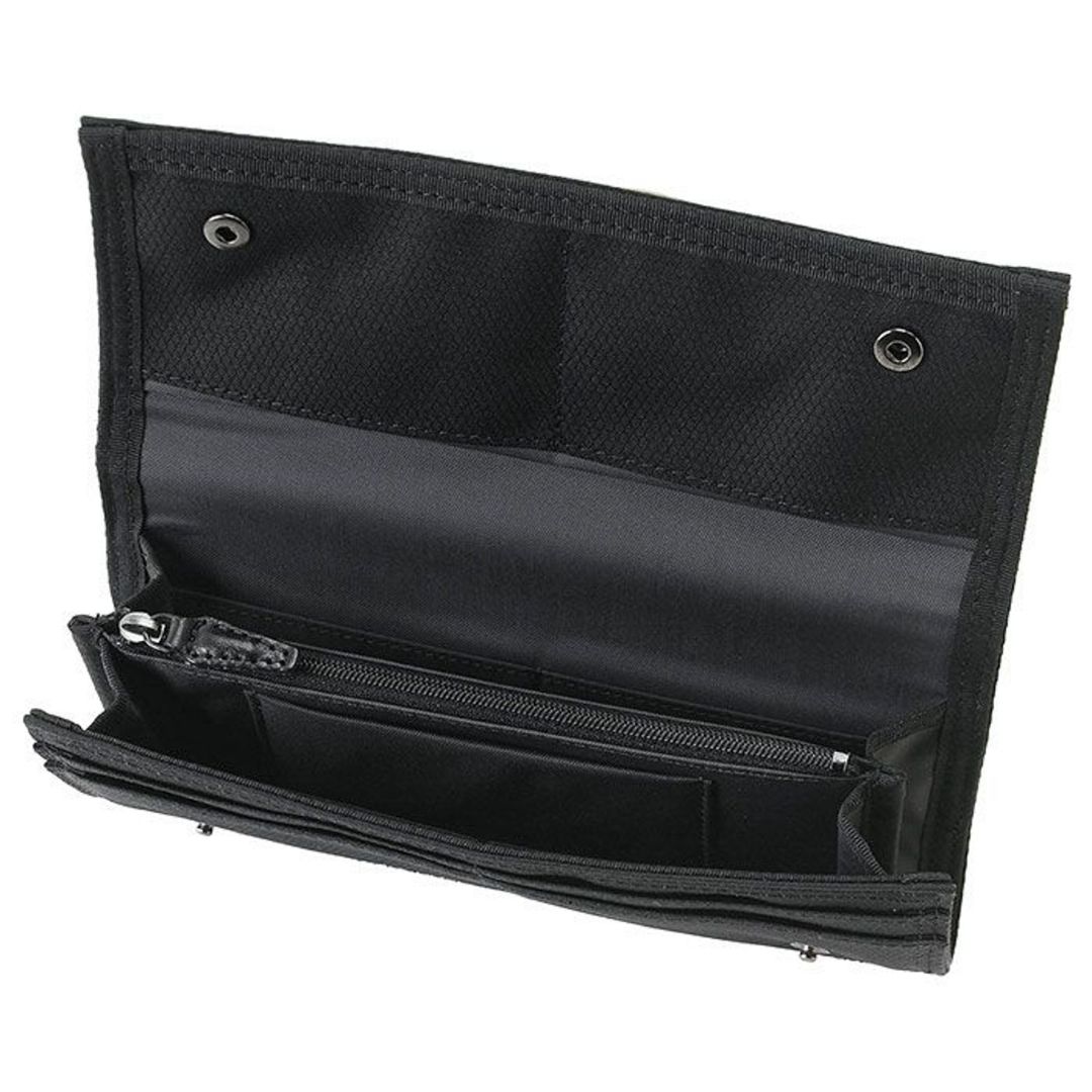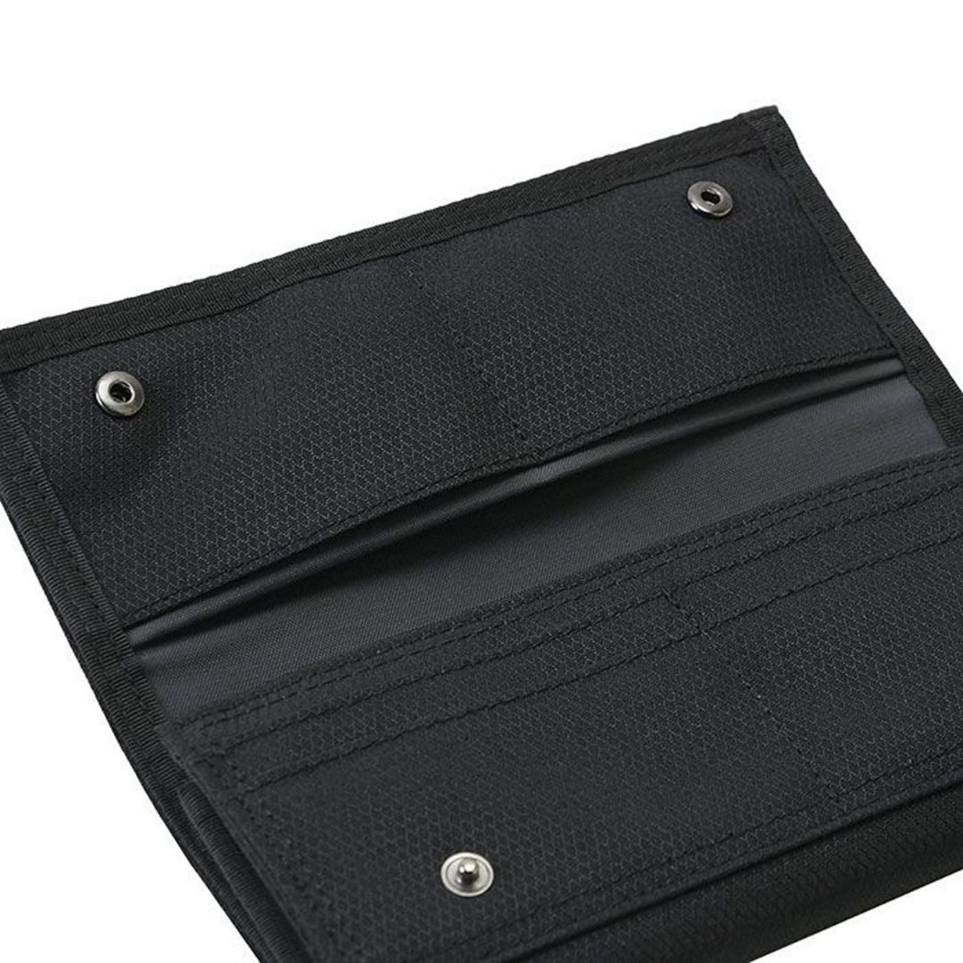 - Dompet ini menggunakan kain ripstop Cordura poliester untuk bagian depan. Bagian belakang terbuat dari nilon ox dengan lapisan uretan