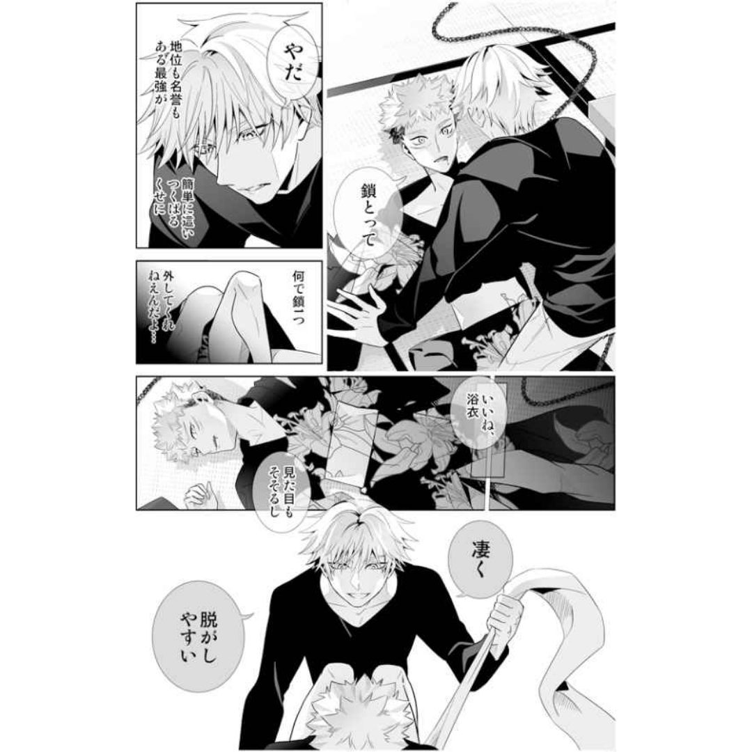 Para penggemar Jujutsu Kaisen Omegaverse dan pairing Gojo Satoru x Itadori Yuuji (GoYuu), inilah final chapter dari seri populer “Too Popular with Alphas” dari circle [Beatty Fly – Mikichi]! Dalam “Too Popular with Alphas, He Ends Up Being a Prisoner” (モテすぎてαに囚われの身), ikuti kelanjutan kisah cinta yang penuh liku antara Gojo dan Yuuji dalam setting omegaverse yang unik.
