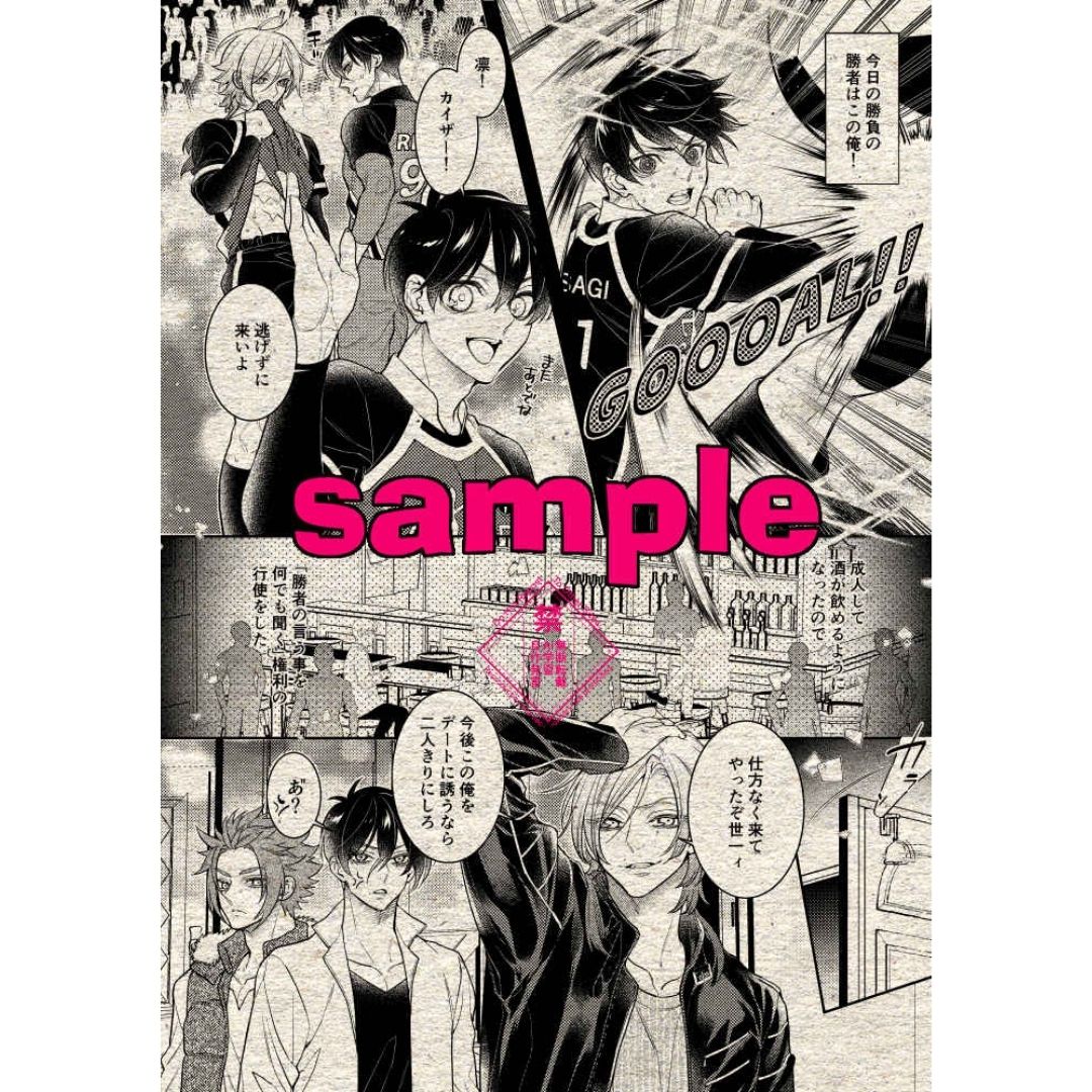 Orgy Quartet dari circle Rebellion Doujinshi Blue Lock menghadirkan momen intens dan provokatif antara empat pemain top Blue Lock. Setelah Seichi menang dalam adu gol melawan Rin dan Kaiser, ia menggunakan hak kemenangannya untuk mengajak mereka minum.