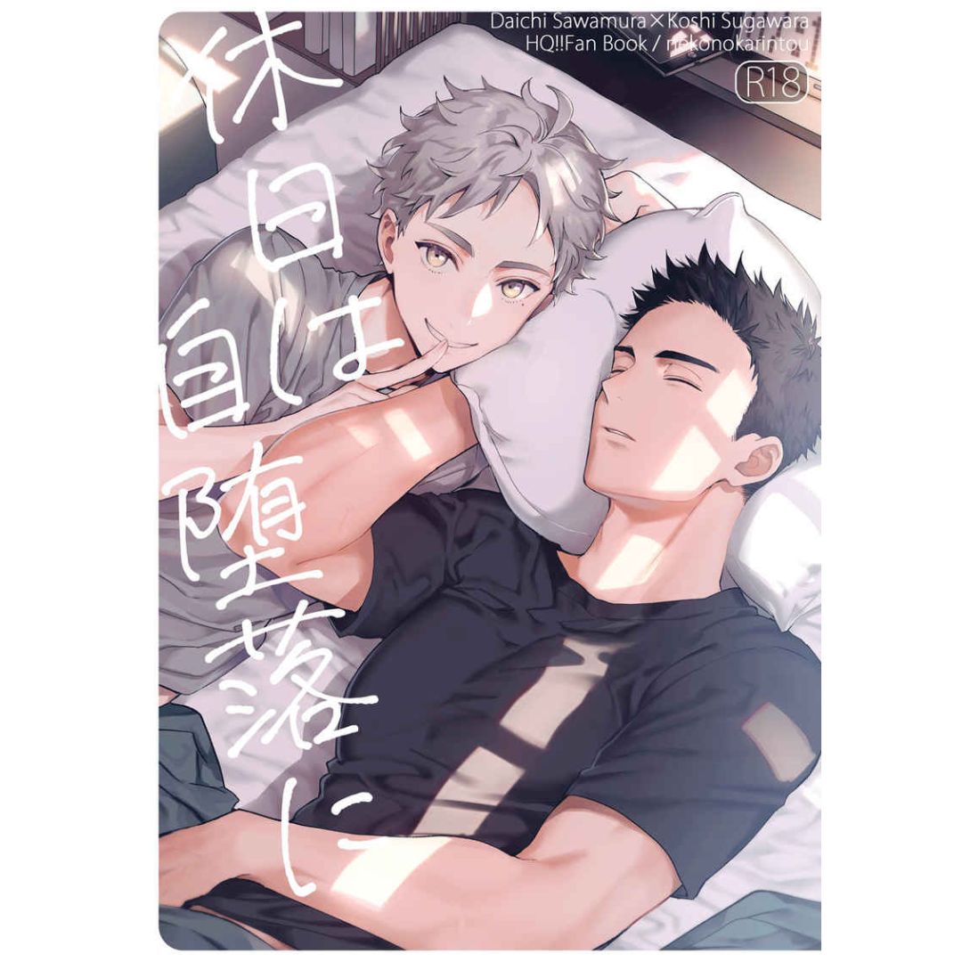 “Holidays are Self-indulgent” adalah Doujinshi Haikyu Daichi x Sugawara karya circle Cat Karinto yang menyajikan kisah penuh kehangatan antara dua karakter yang biasanya sibuk, namun akhirnya bisa menikmati hari libur bersama.