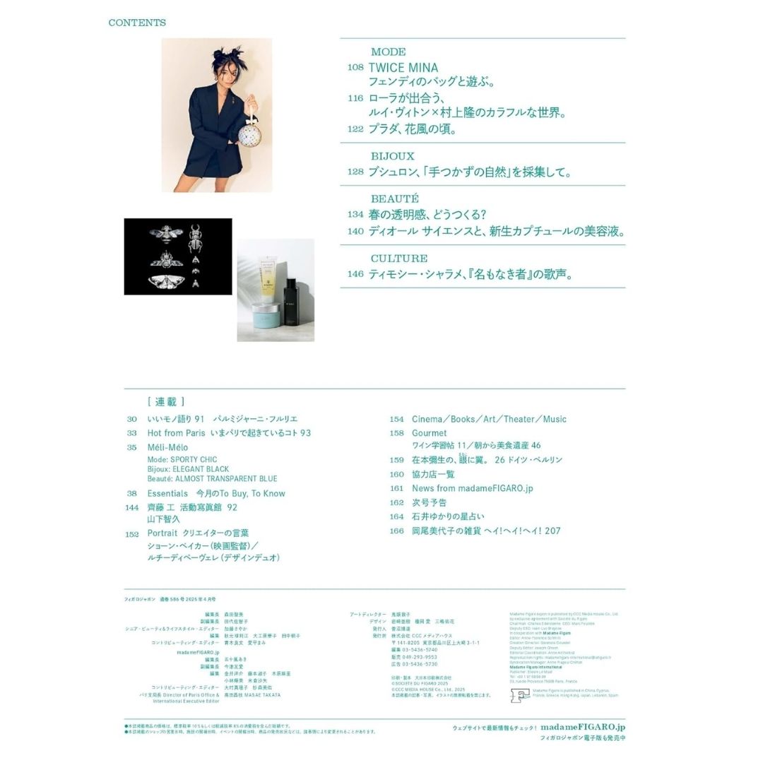 Jangan lewatkan edisi April 2025 dari majalah gaya hidup wanita terkemuka Jepang, FIGARO japon (フィガロジャポン)! Edisi kali ini menampilkan MINA (ミナ) yang anggun dan menawan dari grup K-Pop yang mendunia, TWICE, sebagai sampul majalah.