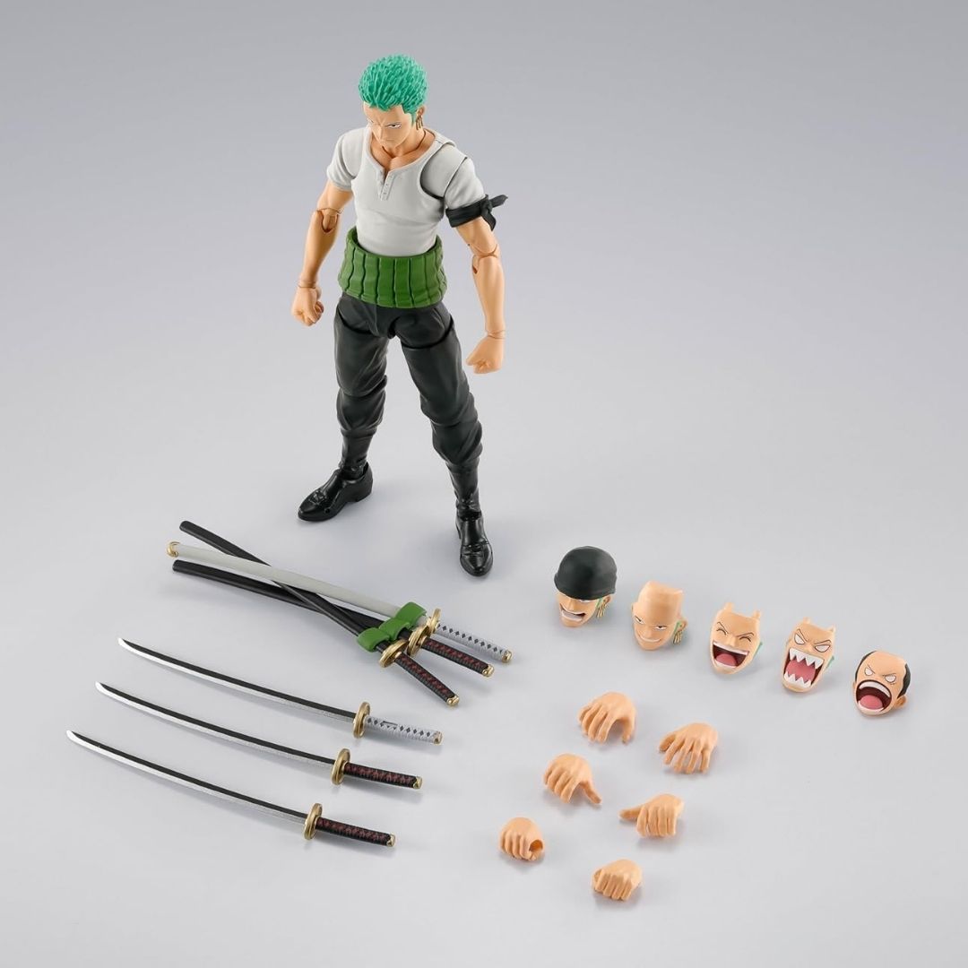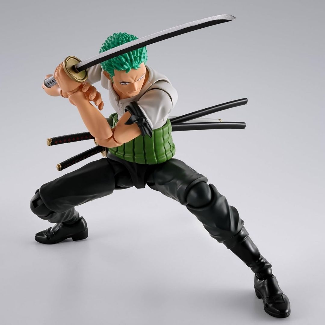Figuarts Roronoa Zoro versi East Blue dari One Piece hadir di seri S.H. Figuarts. Dilengkapi part wajah, tangan, dan set pedang lengkap untuk pose aksi maksimal.