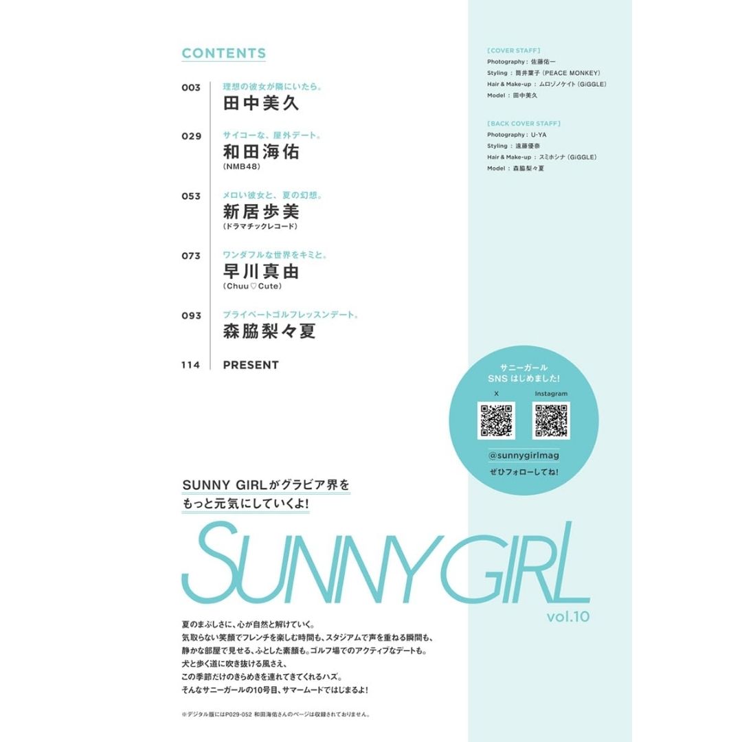 Dalam edisi spesial Sunny Girl Vol.10, Tanaka Miku tampil sebagai cover girl dengan pesona ceria yang menular. Menghadirkan nuansa segar khas musim panas, edisi ini menyuguhkan pemotretan penuh cahaya dan energi positif yang menawan.