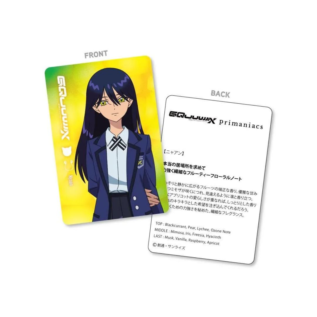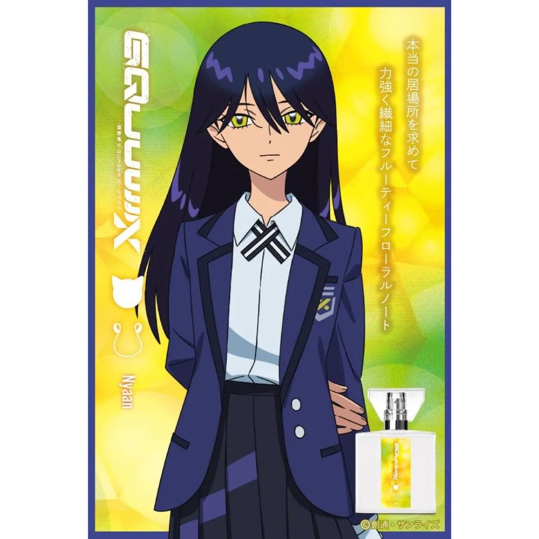 Gundam Fragrance Nyaan menghadirkan aroma fruity floral lembut dengan buah blackcurrant, pear, lychee, bunga mimosa, iris, freesia, hyacinth, dan sentuhan musk, vanilla, raspberry, serta apricot yang memadukan kelembutan dan kekuatan dalam satu paket eksklusif.