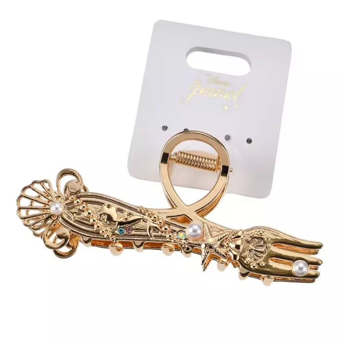 Garpu berwarna emas dihiasi dengan siluet Ariel yang anggun, motif kerang, dan bintang laut, dipercantik dengan kilauan mutiara dan batu. Jepit rambut ini sempurna untuk menambahkan sentuhan fashion karakter secara kasual, sangat direkomendasikan untuk penggunaan sehari-hari.
