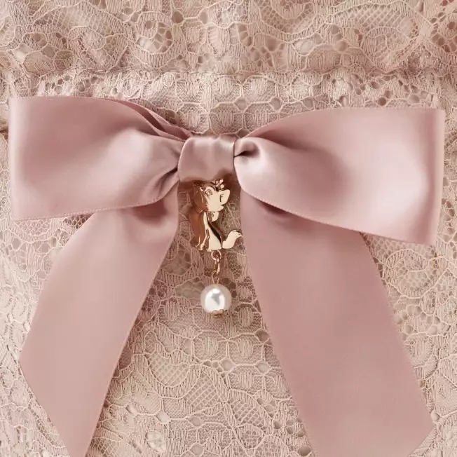 Tas ini tampil dalam desain satu warna dull yang menawan. Perpaduan warna kalem dan material renda memberikan kesan dewasa nan anggun. Pita besar yang menarik perhatian menambahkan sentuhan khas Marie, dengan charm die-cut karakter sebagai sorotan utama. Pegangan rampingnya memberikan kesan elegan, terbuat dari material renda yang sama dengan bodi tas. Tali serutnya terbuat dari tali pintal berkilau, menciptakan keseimbangan yang apik.