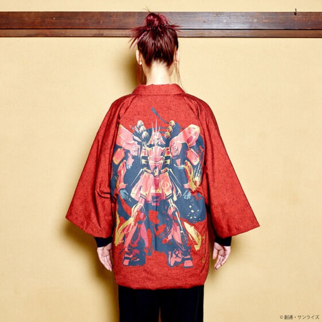 HANTEN SAZABI GUNDAM menampilkan kombinasi tradisi Jepang dan desain modern, terbuat dari katun Shin Tsumugi premium, ringan, hangat, dengan motif Sazabi dramatis, diproduksi manual di Jepang untuk koleksi eksklusif penggemar Gundam.