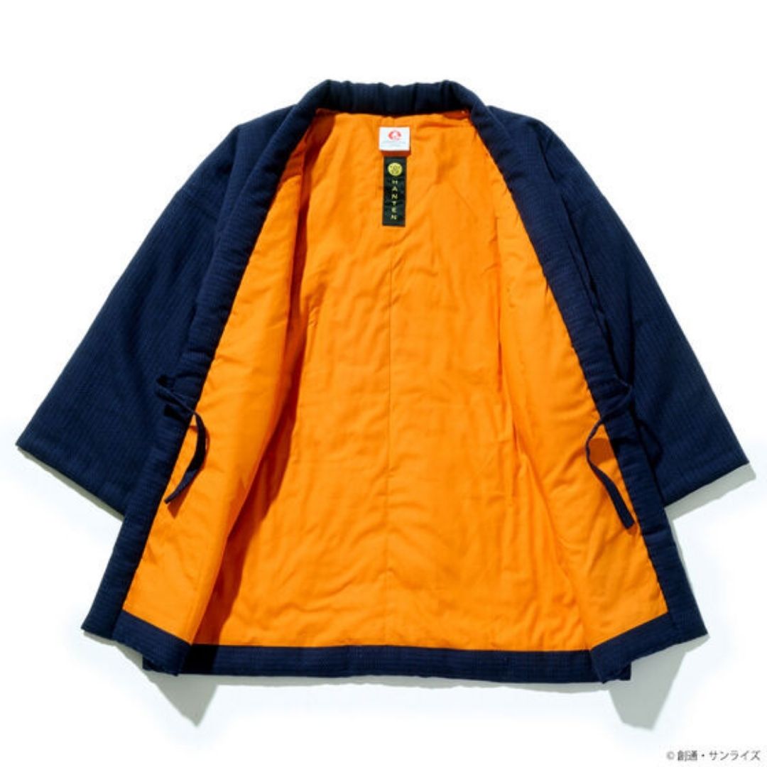 Hanten Xi Gundam menggabungkan tradisi Jepang dan desain modern, terbuat dari katun Shinkiko premium, hangat, nyaman, fitted, dengan motif Xi Gundam dramatis di belakang, diproduksi manual di Jepang untuk koleksi eksklusif penggemar Gundam.
