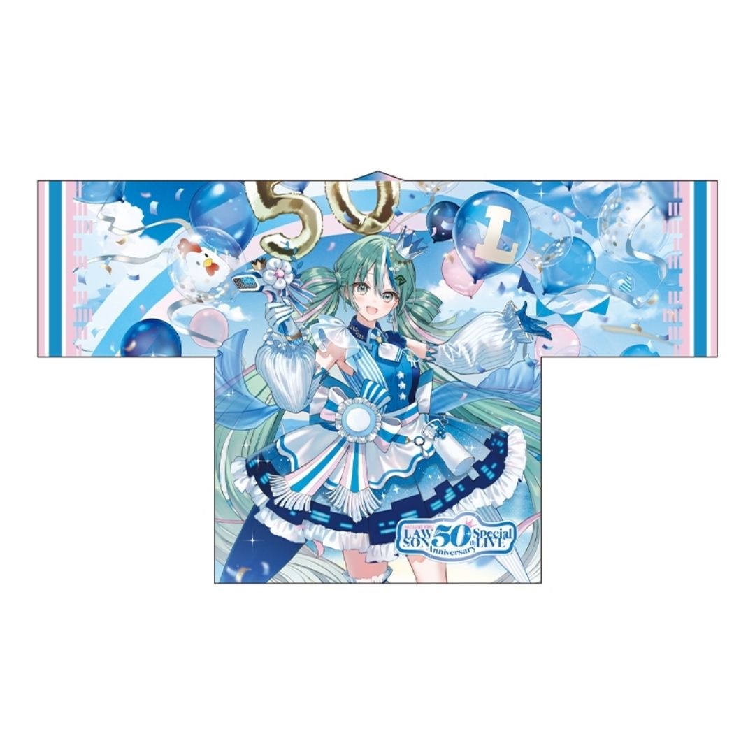 Hatsune Miku resmi hadir dalam LAWSON 50th Anniversary Happi LIVE, ringan, nyaman, dan sempurna untuk konser, event, atau koleksi penggemar.
