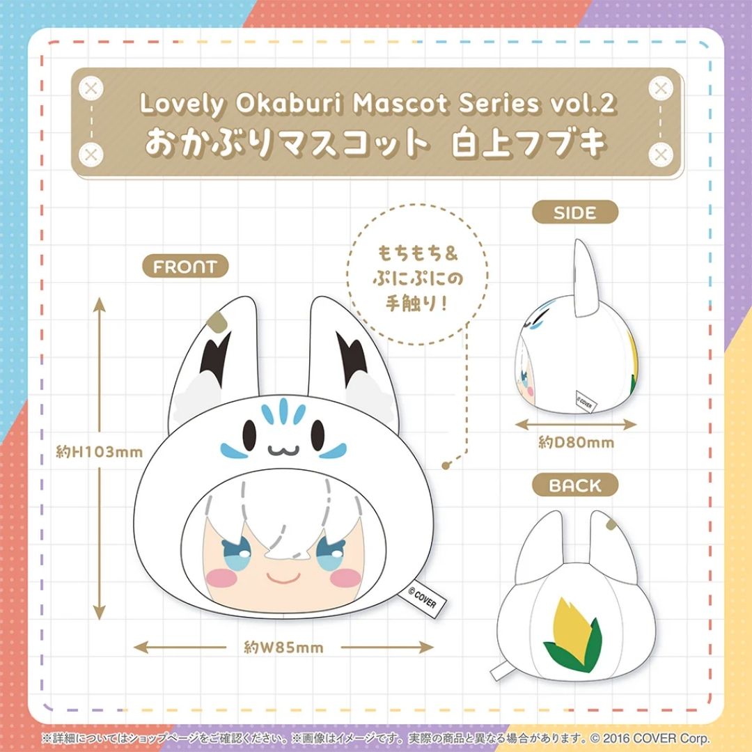 Headwear Mascot Shirakami Fubuki dari seri spesial Hololive bertema “wearing something”. Maskot imut ini menampilkan Fubuki mengenakan karakter favorit fans. Terbuat dari bahan polyester dan TPR berkualitas, cocok untuk dekorasi meja, koleksi, atau hadiah bagi penggemar Hololive.