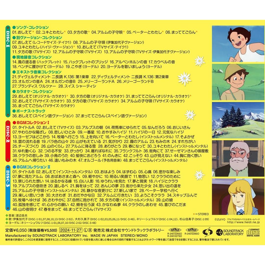 Rayakan 50 tahun kisah klasik “Heidi, Girl of the Alps” dengan koleksi musik lengkap ini! CD 3 disc ini berisi lagu tema, lagu sisipan, musik latar, dan musik tambahan yang belum pernah dirilis sebelumnya.