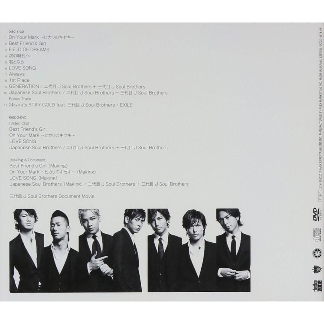 CD Songs: On Your Mark ~ Hikari no Kiseki~, Best Friend’s Girl, FIELD OF DREAMS, LOVE SONG, Always, 1st Place, GENERATION, Japanese Soul Brothers, Bonus Track 24 karats STAY GOLD feat. 3rd Generation J Soul Brothers / EXILE