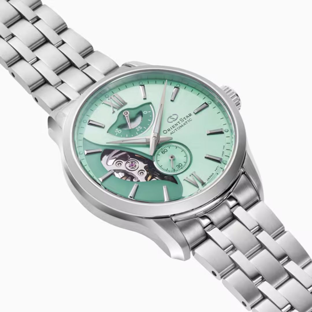 Jam tangan Orient Star RK-AV0B12E hadir dengan desain elegan yang terinspirasi dari keindahan Laut Mediterania. Perpaduan warna yang segar dan dial berlapis dua menciptakan kesan mewah, cocok untuk dikenakan di berbagai kesempatan spesial.