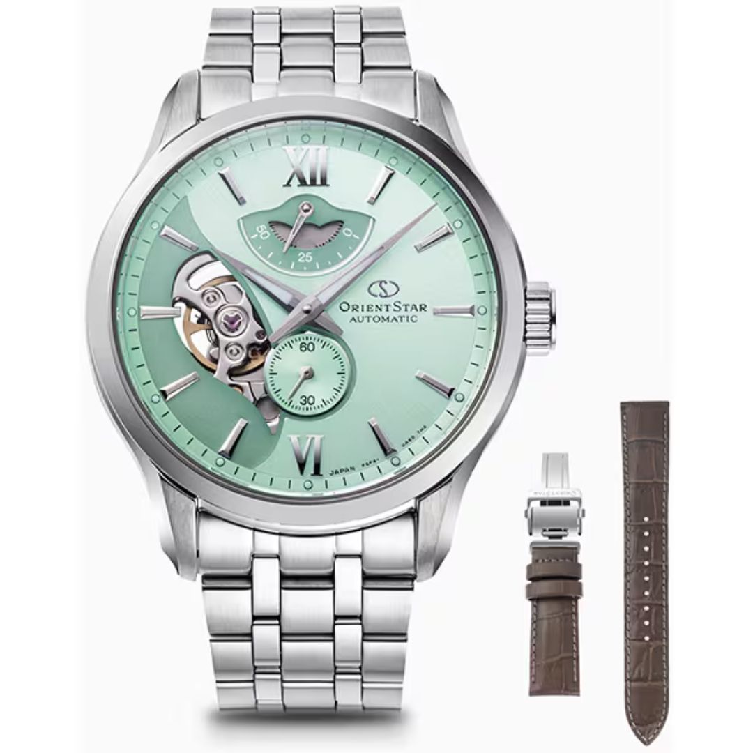 Jam tangan Orient Star RK-AV0B12E hadir dengan desain elegan yang terinspirasi dari keindahan Laut Mediterania. Perpaduan warna yang segar dan dial berlapis dua menciptakan kesan mewah, cocok untuk dikenakan di berbagai kesempatan spesial.