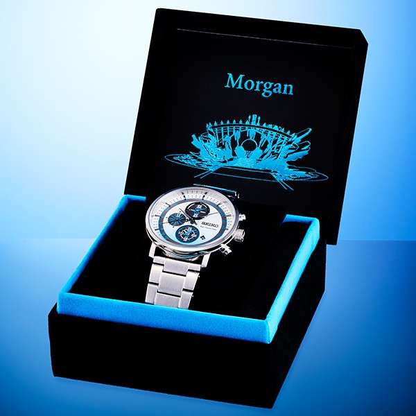 Jam tangan edisi spesial Jam Tangan SEIKO x Fate Grand Order dengan desain eksklusif terinspirasi dari Berserker/Morgan. Menghadirkan kombinasi warna biru dan hitam yang elegan, serta elemen desain berdasarkan senjata dan karakteristik sang Iron Queen. Tersedia dalam dua varian: dengan stand dan tanpa stand.