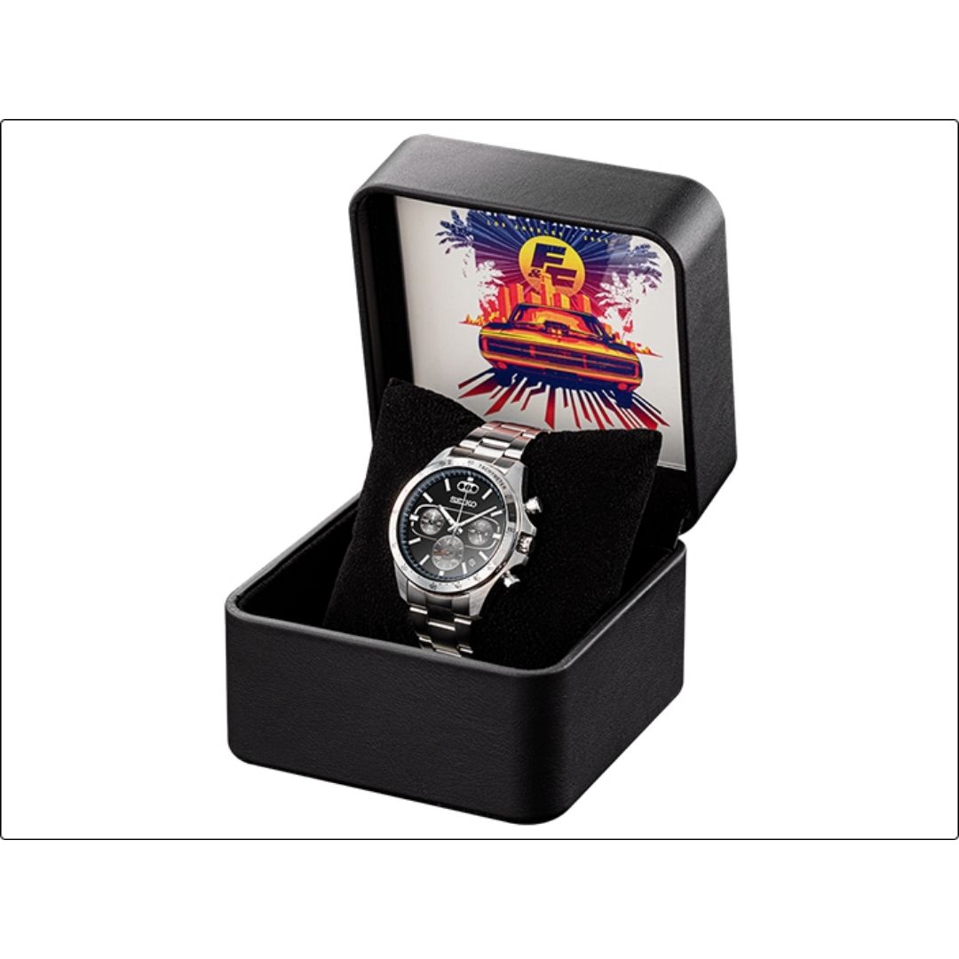 Terinspirasi dari Dodge Charger milik Dom Toretto, jam tangan SEIKO dan Fast & Furious: Fire Boost ini tampil dengan desain chronograph yang maskulin dan dinamis. Setiap detail dial dirancang untuk merepresentasikan kecepatan, mesin, dan kekuatan khas dunia balap.