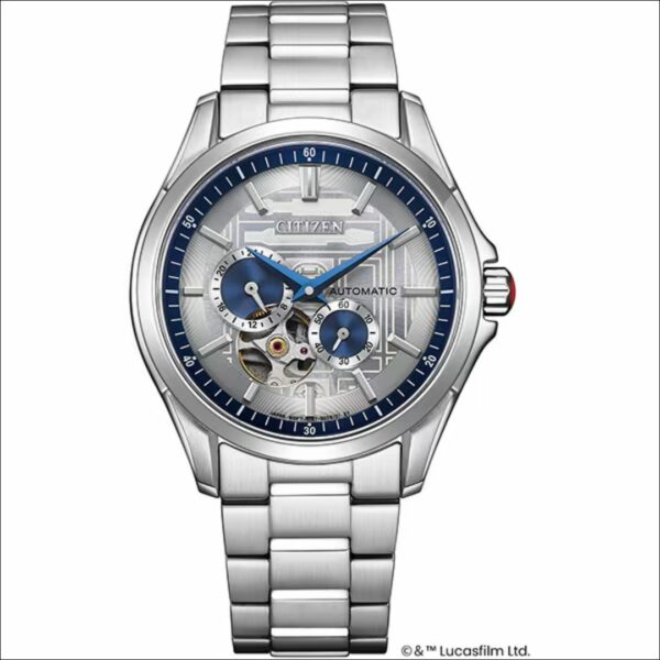 Jam Tangan Star Wars CITIZEN NP1017-61A R2-D2 Limited Edition adalah kolaborasi spesial antara Citizen Collection dan waralaba ikonik Star Wars. Mengangkat karakter favorit dunia, R2-D2, jam ini menampilkan desain mekanikal elegan dengan motif warna perak dan biru.