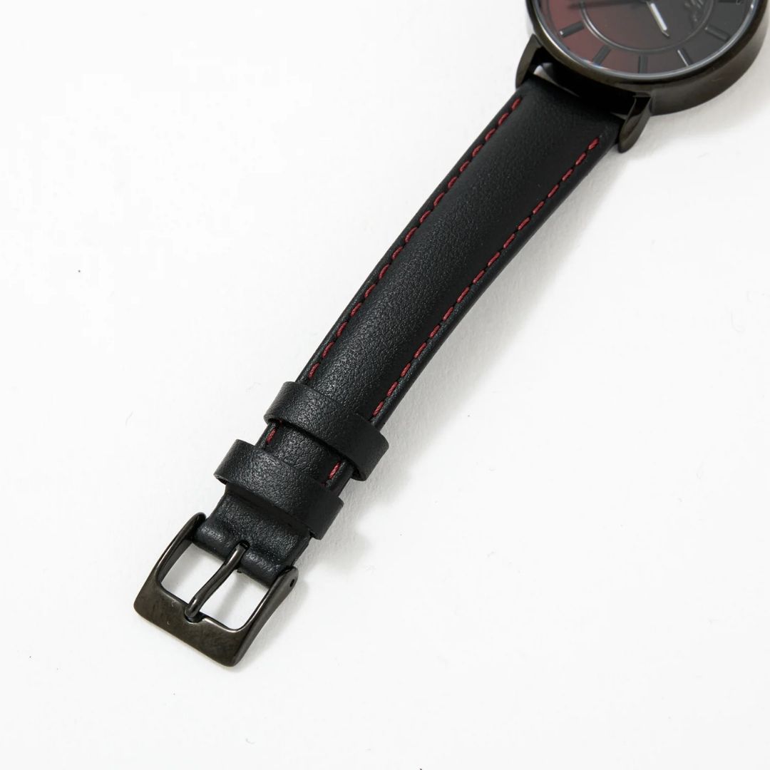 - Tali Kulit Berkarakter: Kombinasi kulit hitam dengan jahitan merah pada tali jam