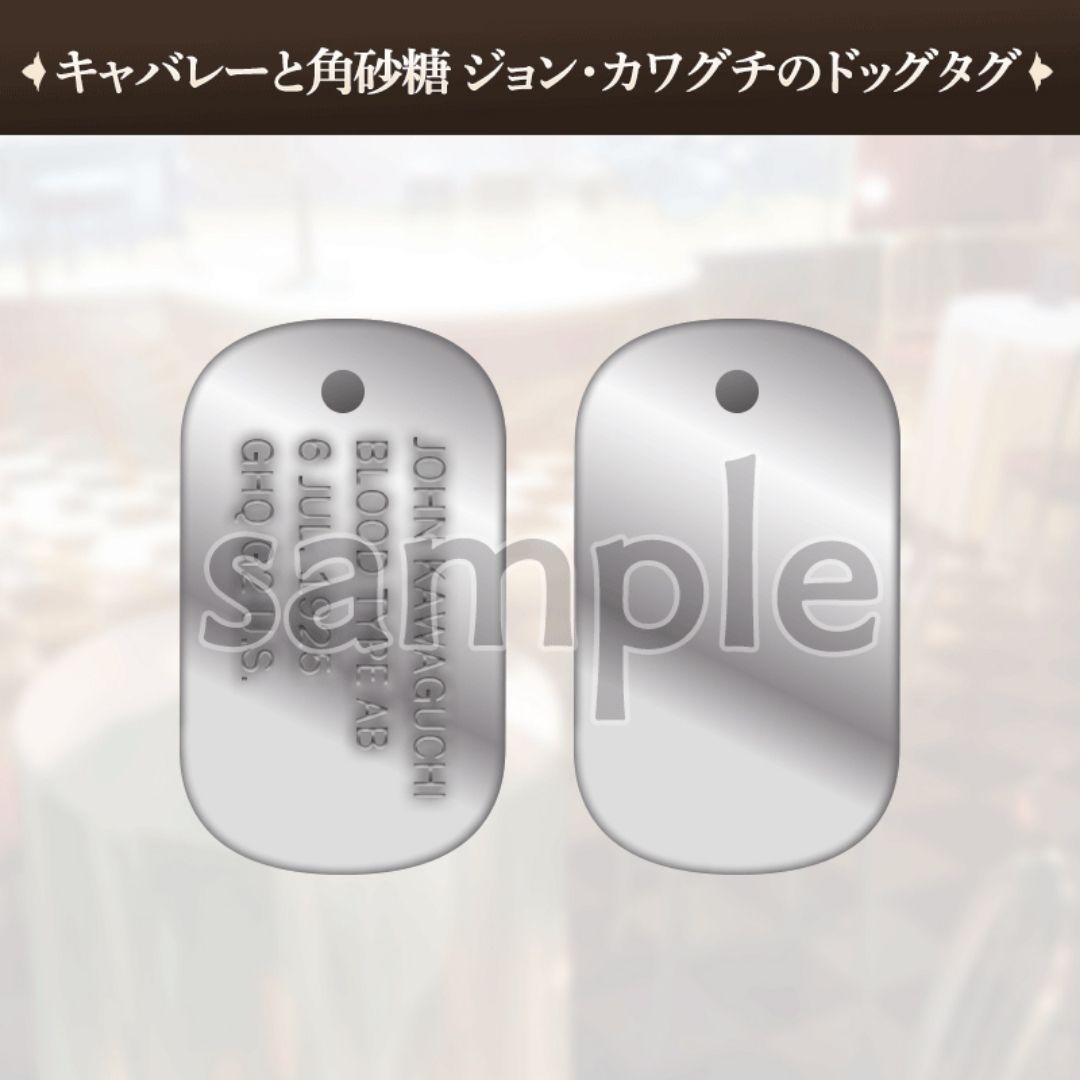 John Kawaguchi Dog Tag adalah merchandise resmi Cabaret and Sugar Cubes yang menjadi simbol identitas penting dalam cerita. Dog tag ini ditampilkan dalam scenario book short story dan ditujukan bagi penggemar serta kolektor.
