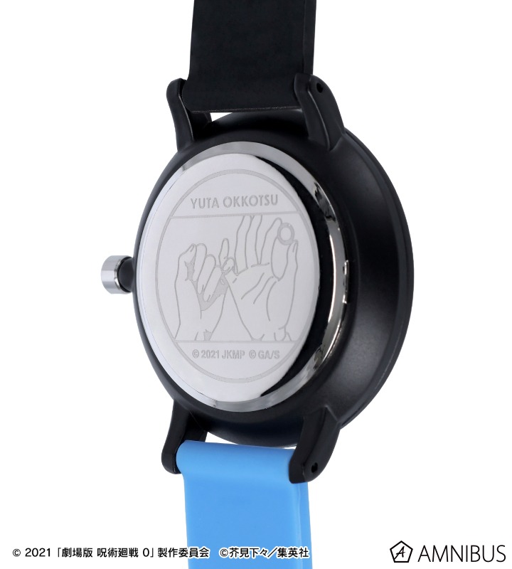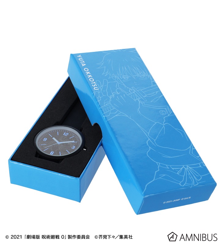 Berbasis warna hitam dengan aksen warna khas Yuta Okkotsu, jam ini memiliki dial dengan ilustrasi Yuta Okkotsu, serta jarum jam dan indeks yang terinspirasi dari warna karakternya. Bagian belakang casing diukir dengan motif dan nama Yuta Okkotsu dalam huruf Romawi. Tali jamnya memiliki desain yang menggabungkan tanggal ulang tahun Anda.
