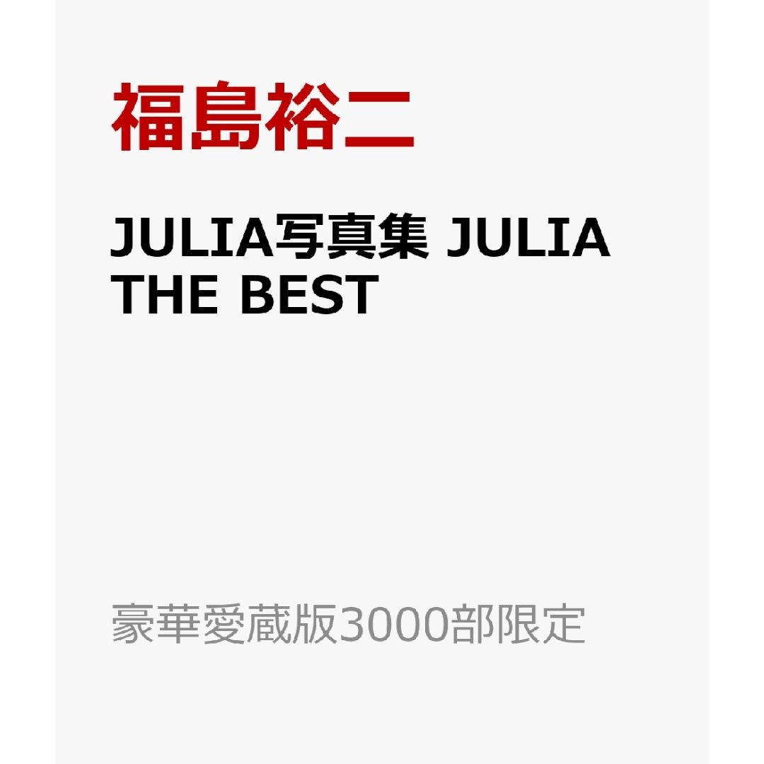 Bagi para penggemar Julia, bersiaplah untuk mendapatkan koleksi visual terbaiknya! JULIA THE BEST (Edisi Kolektor Deluxe Terbatas) adalah buku foto yang wajib dimiliki, menampilkan karya-karya pilihan Julia yang diabadikan oleh fotografer ternama, Yuji Fukushima. Edisi ini sangat eksklusif, hanya dicetak terbatas!
