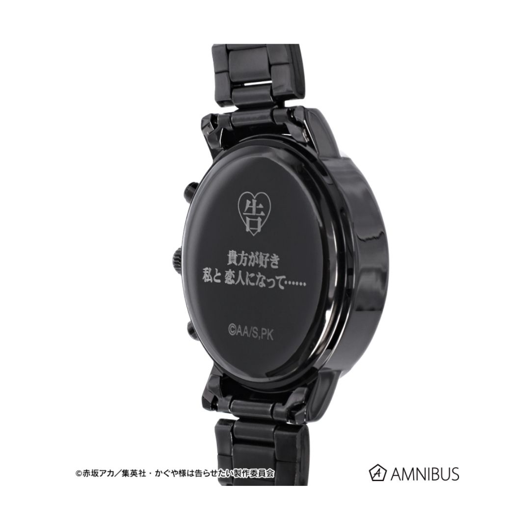 - Detail Muka Jam: Muka jam menampilkan siluet profil Kaguya Shinomiya dan kutipan dialog berwarna emas.