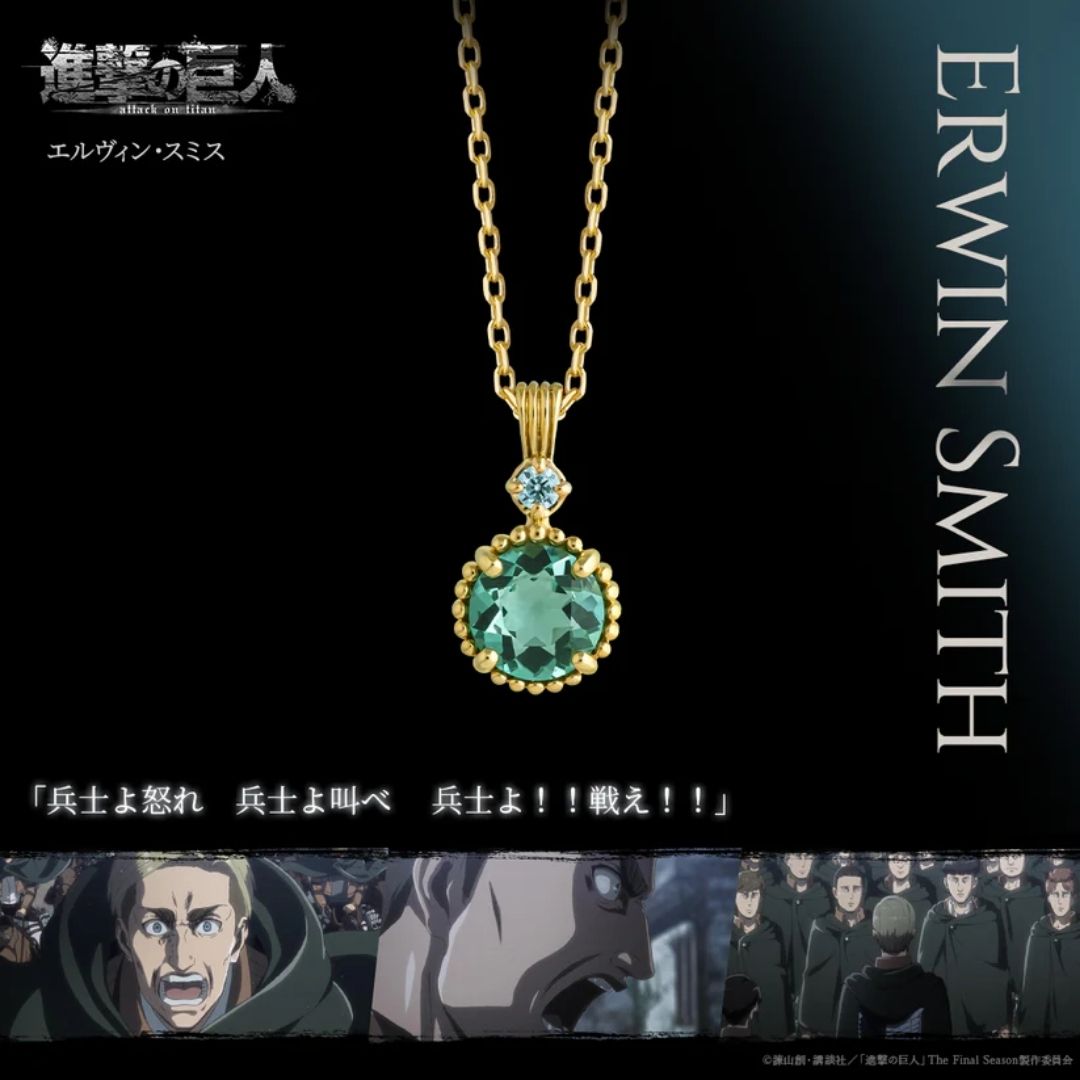 Terinspirasi dari momen heroik Erwin di Season 3 Episode 53, kalung Attack on Titan ini mewakili keberanian, kepemimpinan, dan pengorbanan yang tak tergoyahkan. Batu utama green quartz dipilih untuk melambangkan harmoni dan harapan baru, mengingatkan kita akan semangat para prajurit muda yang dipimpin Erwin dalam menghadapi Titan.