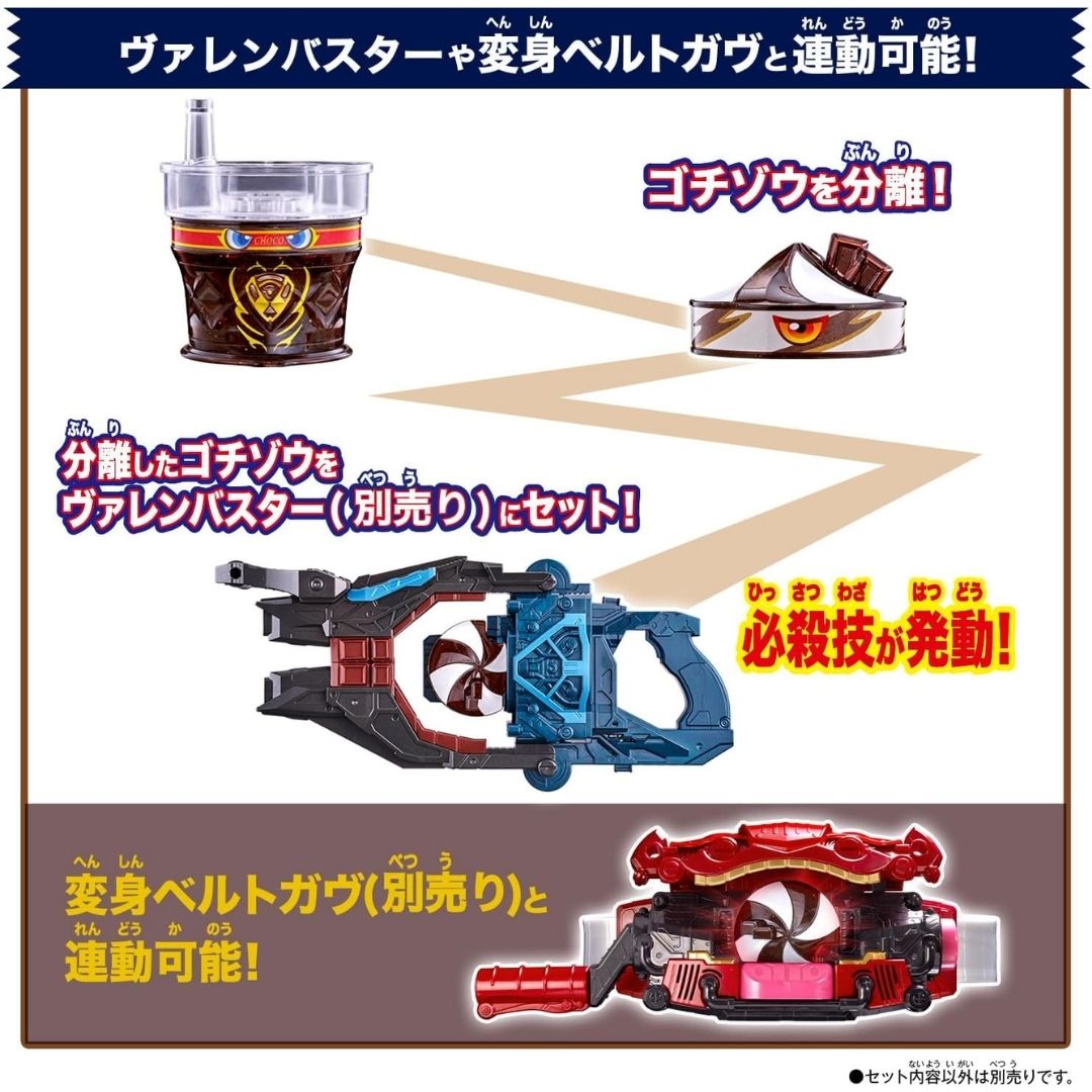 Lebih lanjut, Anda dapat memisahkan Gochizo dan menyetelnya di DX ValenBuster (dijual terpisah) untuk mengaktifkan trik spesial yang keren!