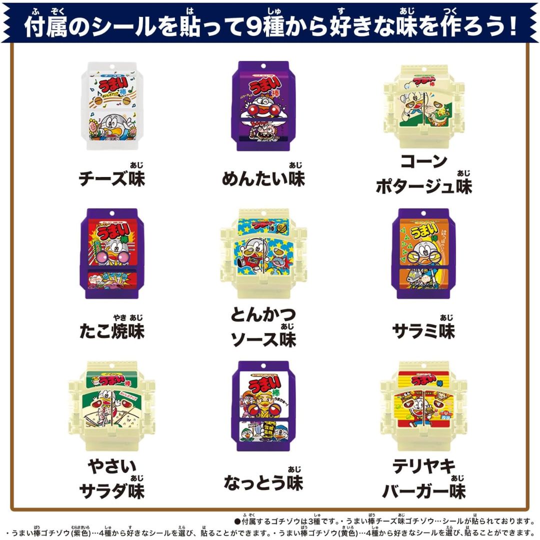 - Termasuk Umaibo Cheese Flavored Gotizoma untuk transformasi Shot Snack Form