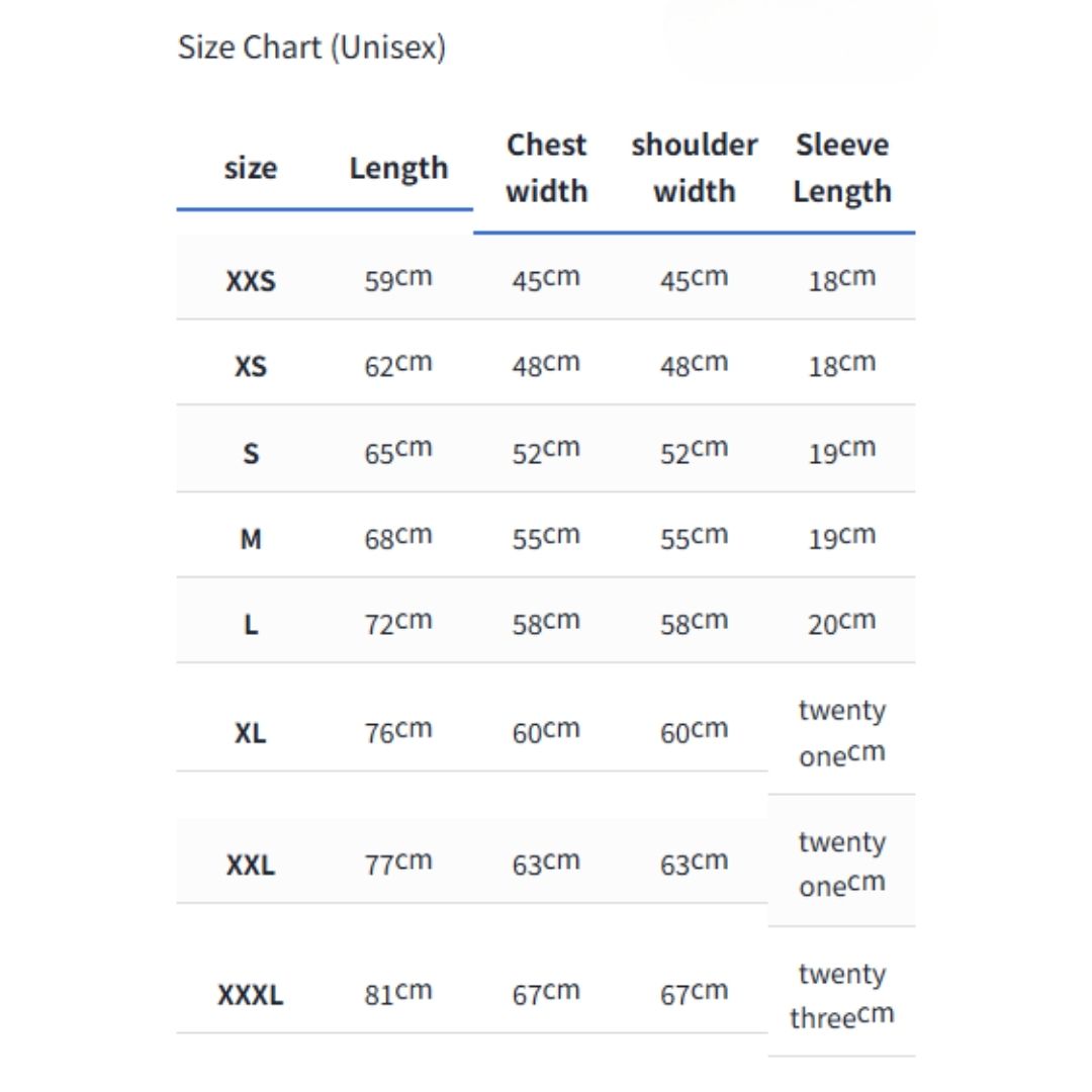 Ukuran Tersedia: XXS, XS, S, M, L, XL, XXL, XXXL