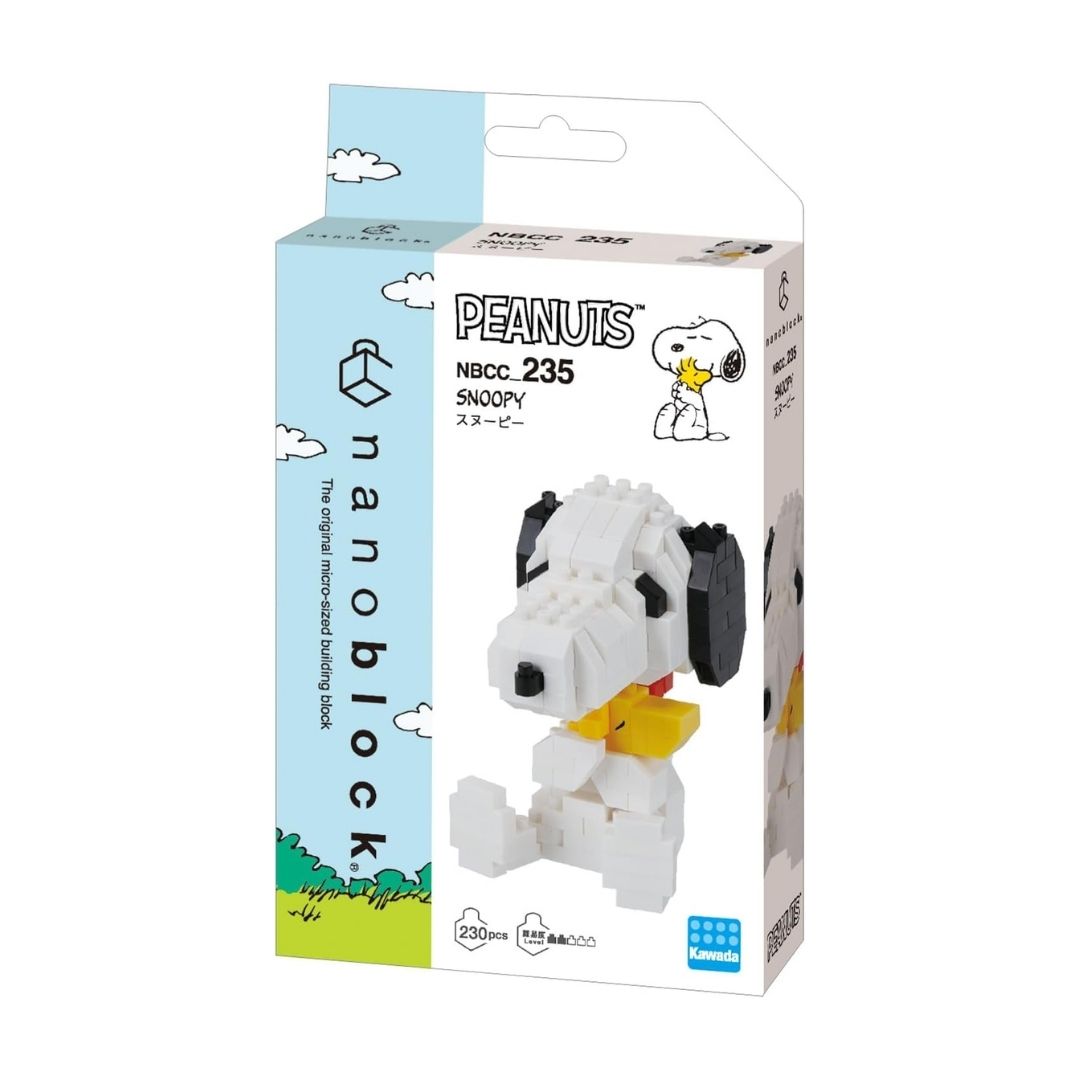 - Paket: Berisi komponen blok nanoblock untuk merakit karakter Snoopy & Woodstock.