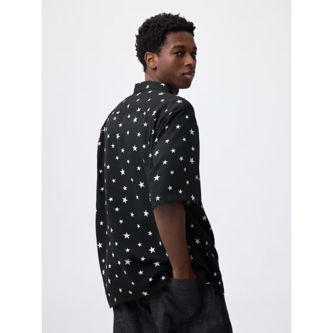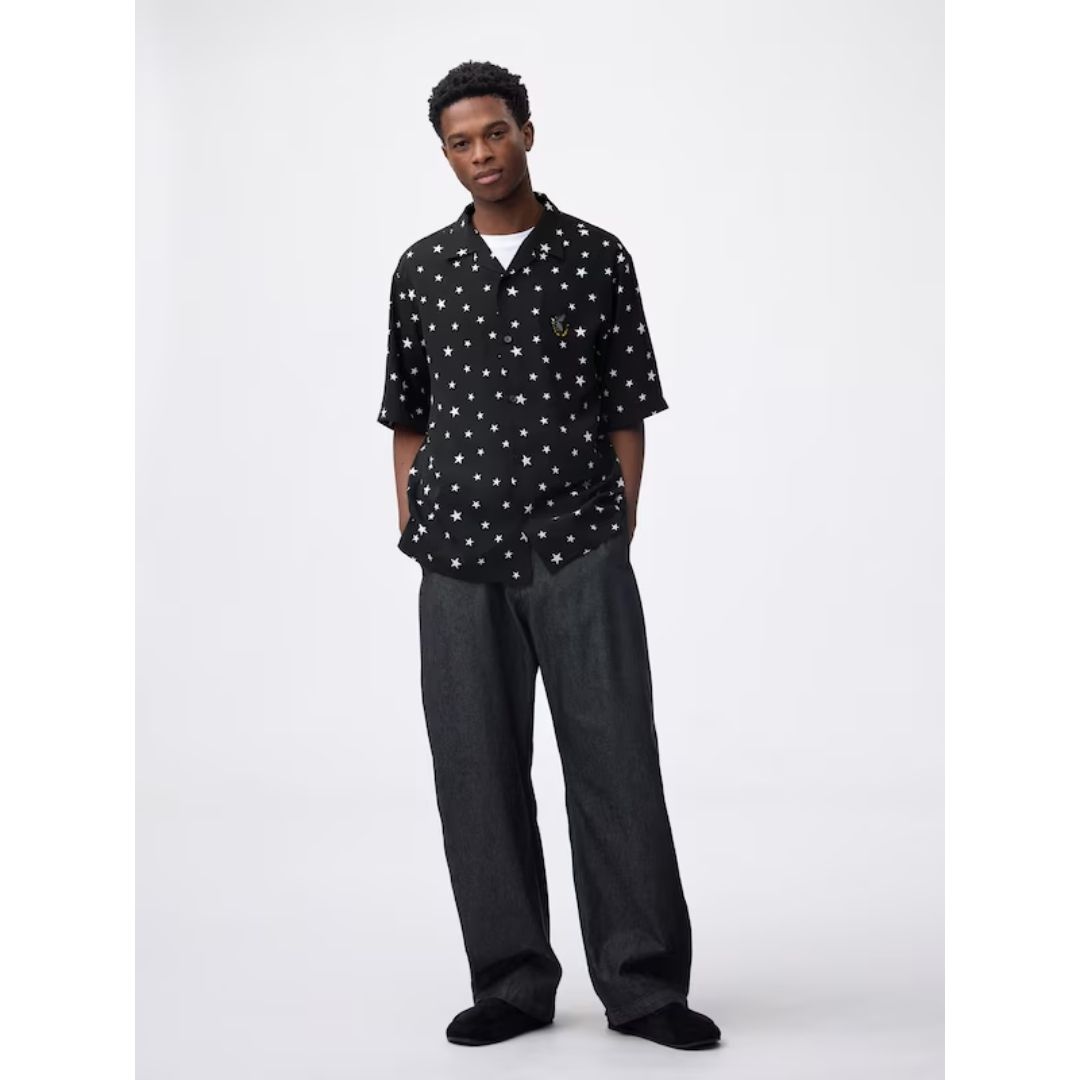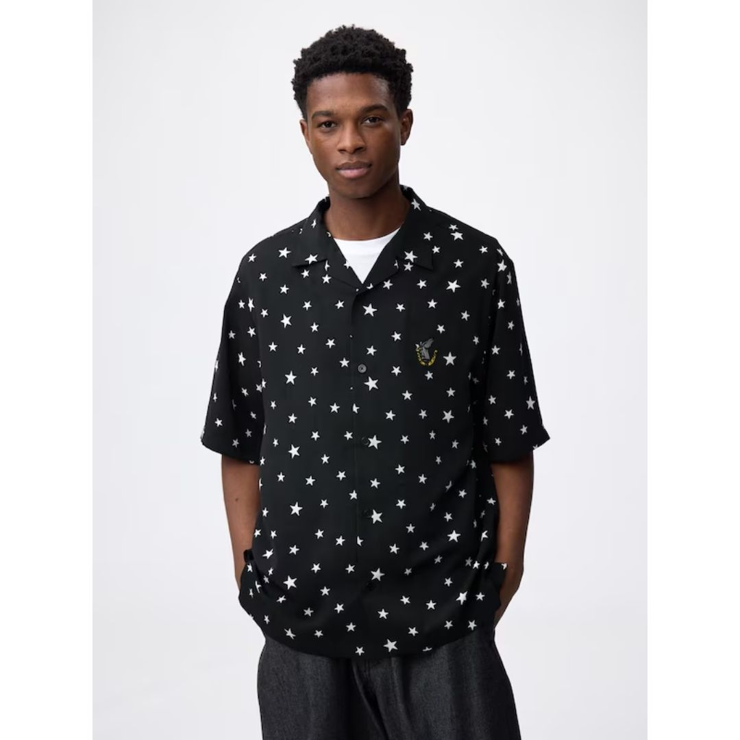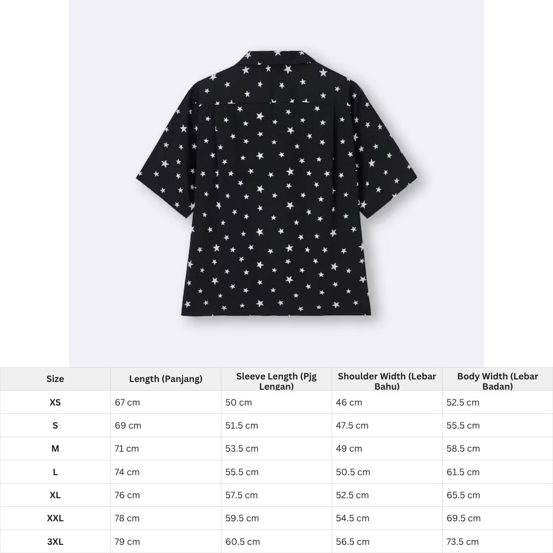 kemeja GU x JoJo Bizarre ini mengusung desain khas Steel Ball Run dengan motif bintang dan detail bordir tapal kuda serta kuda yang ikonik. Tampilan clean namun tetap memiliki sentuhan karakter yang kuat.