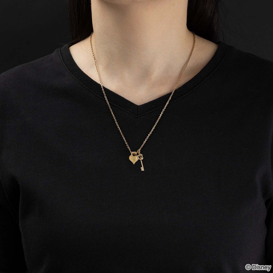 Kalung perak elegan dengan liontin Heart Moon yang dibuat detail, menampilkan tekstur laut halus, keyhole di bagian belakang, serta charm Keyblade yang merepresentasikan kisah ikoniknya.