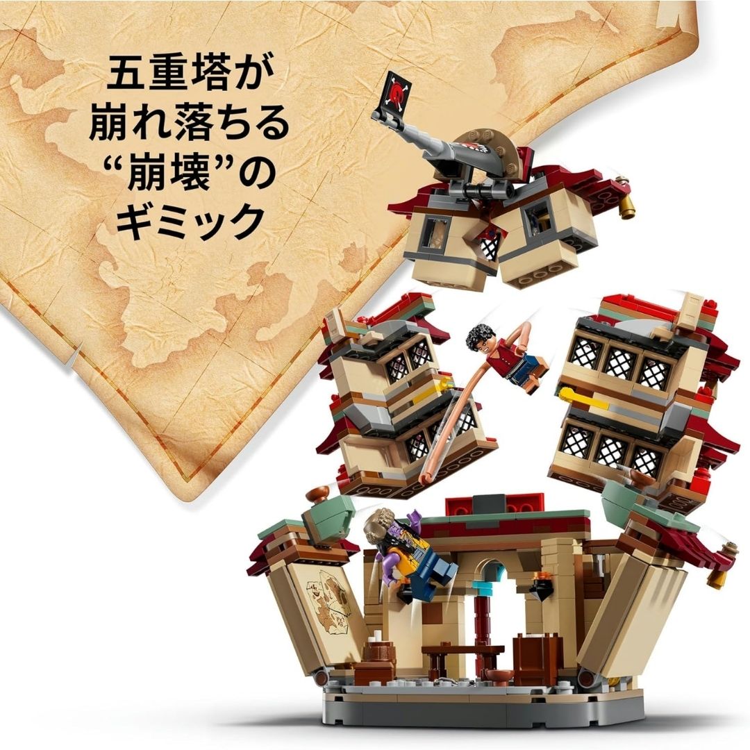 - Minifigure lengkap: Luffy, Nami, Usopp, Arlong, dan Chu dengan detail unik.