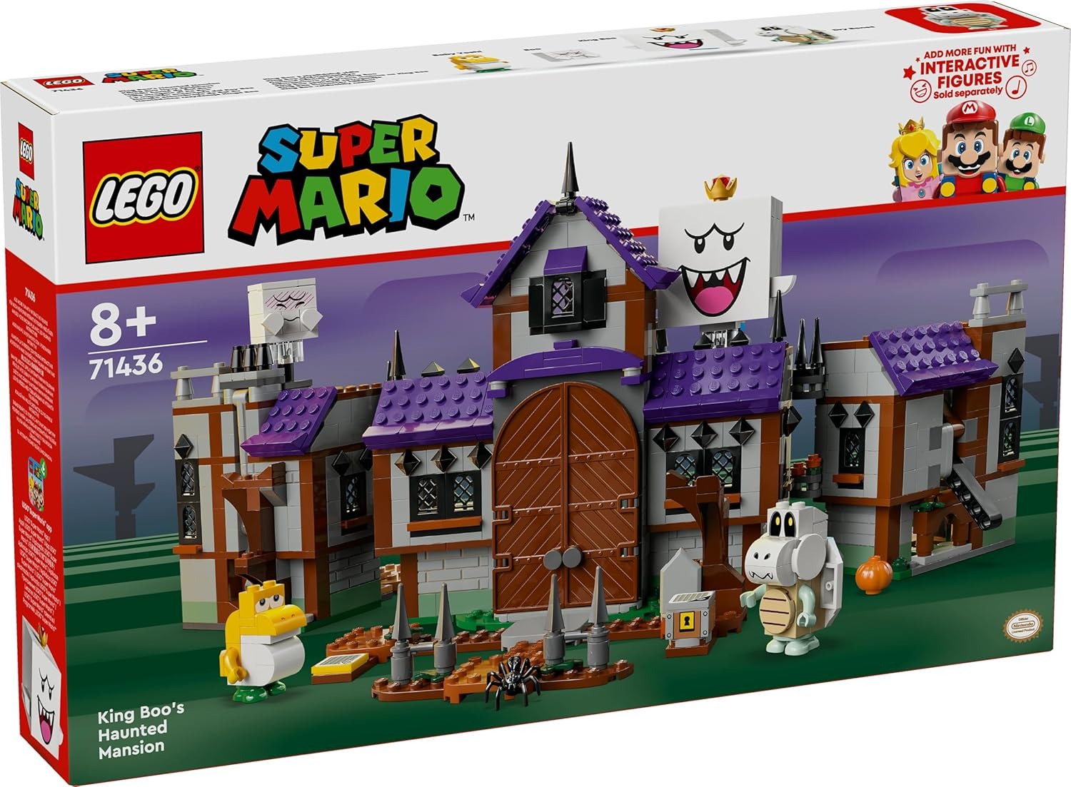 Temukan kunci peti harta karunmu bersama Raja Boo dan tangga! Bergabunglah dengan LEGO® Mario, LE GO® Luigi, atau LE GO® Peach (masing-masing dijual terpisah) untuk mengalahkan musuh dan memasuki mansion.