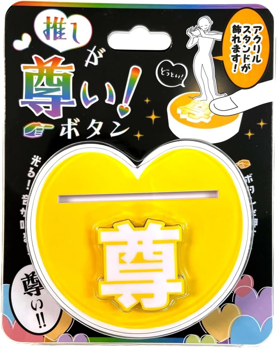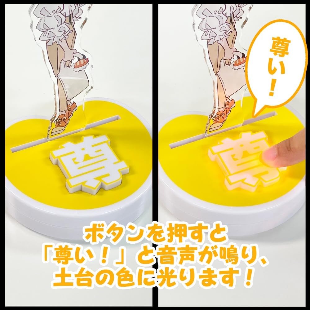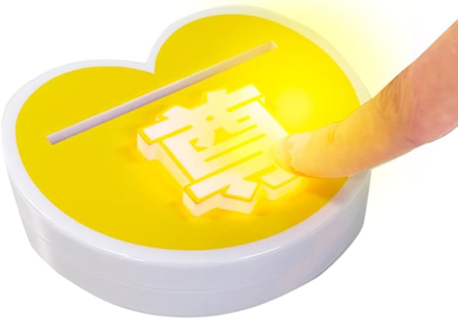 Hadirkan Lucan Battery Included, Pushing Button yellow sentuhan personal pada acrylic stand Anda dengan alas Lu can yang inovatif! Alas akrilik ini dilengkapi tombol berbentuk hati yang lucu. Cukup tekan tombolnya, dan Anda akan mendengar suara Respect! yang diikuti dengan cahaya kuning memancar dari alas.