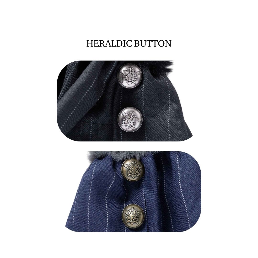 Aksen: Bordiran kontrak Ciel & saputangan Sebastian, tombol lambang keluarga Phantomhive