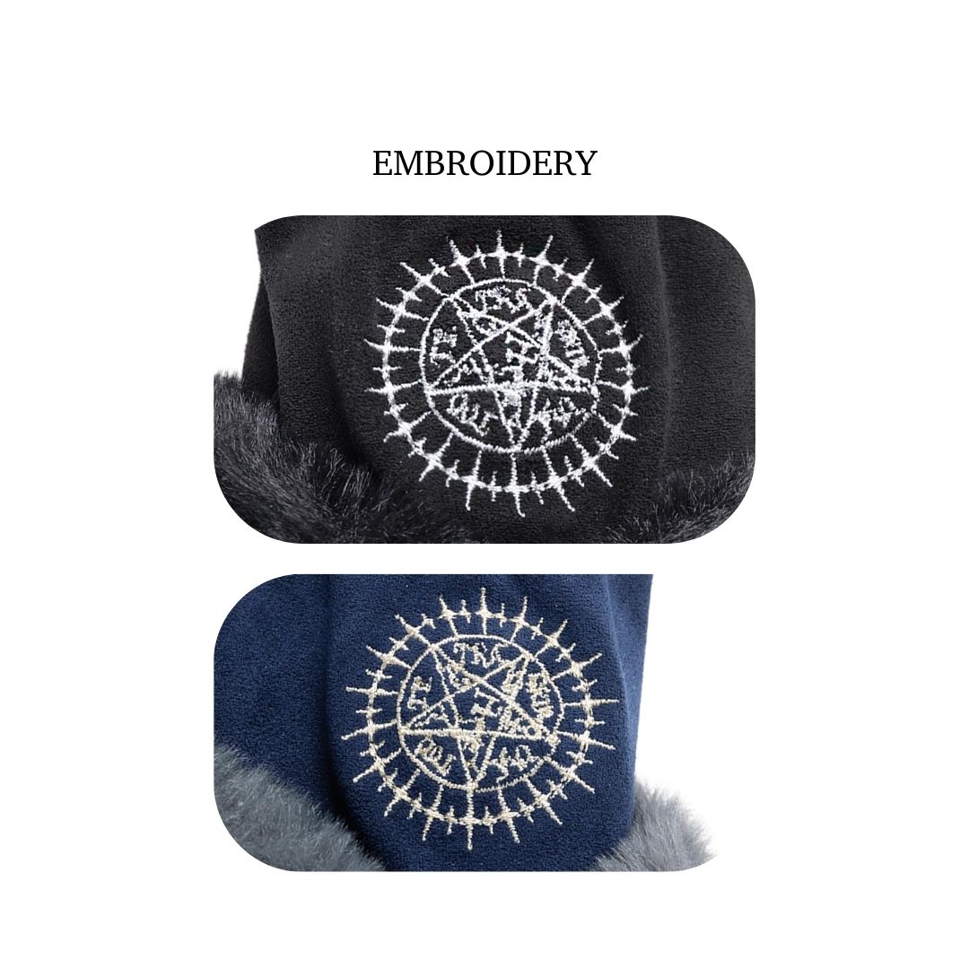 MAYLA Black Butler Iconique Glove menampilkan sarung tangan elegan dari Boarding School Arc dengan suede lembut, faux fur, aksen metalik, dan ruffle rapi. Sarung tangan Black Butler dengan tombol Phantomhive, bordiran Ciel & Sebastian, dan ribbon pergelangan, elegan untuk cosplay atau koleksi.
