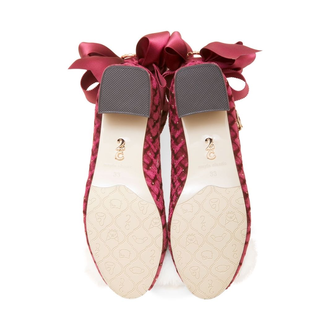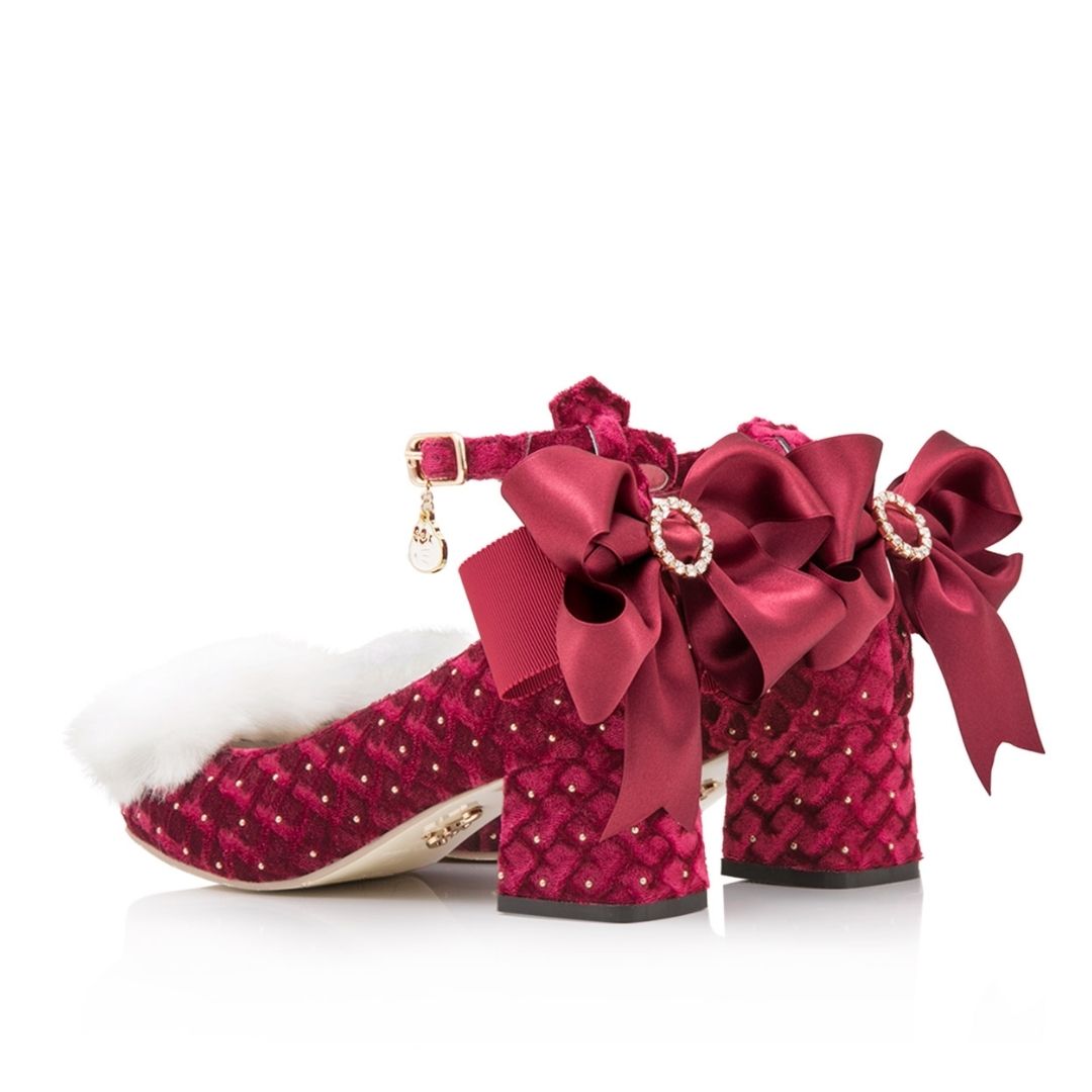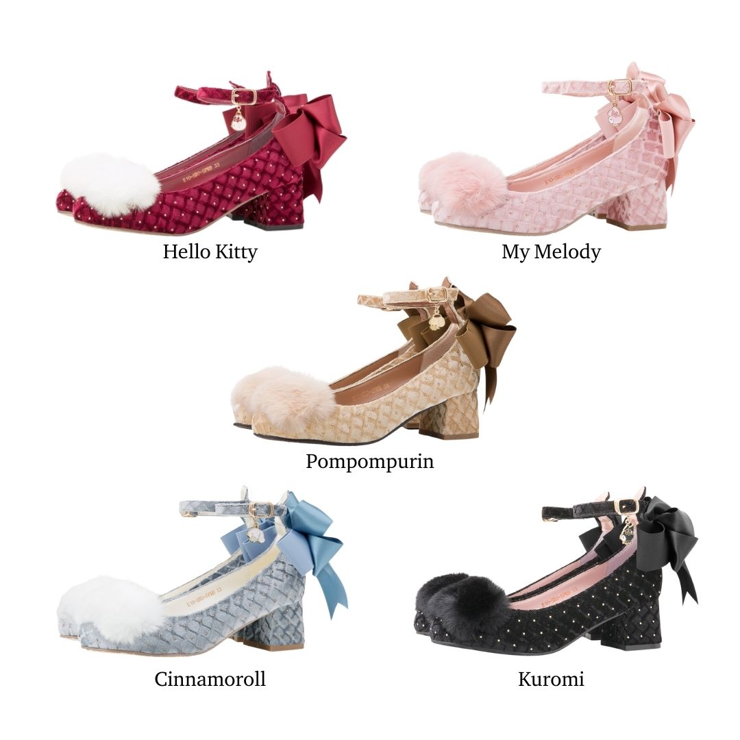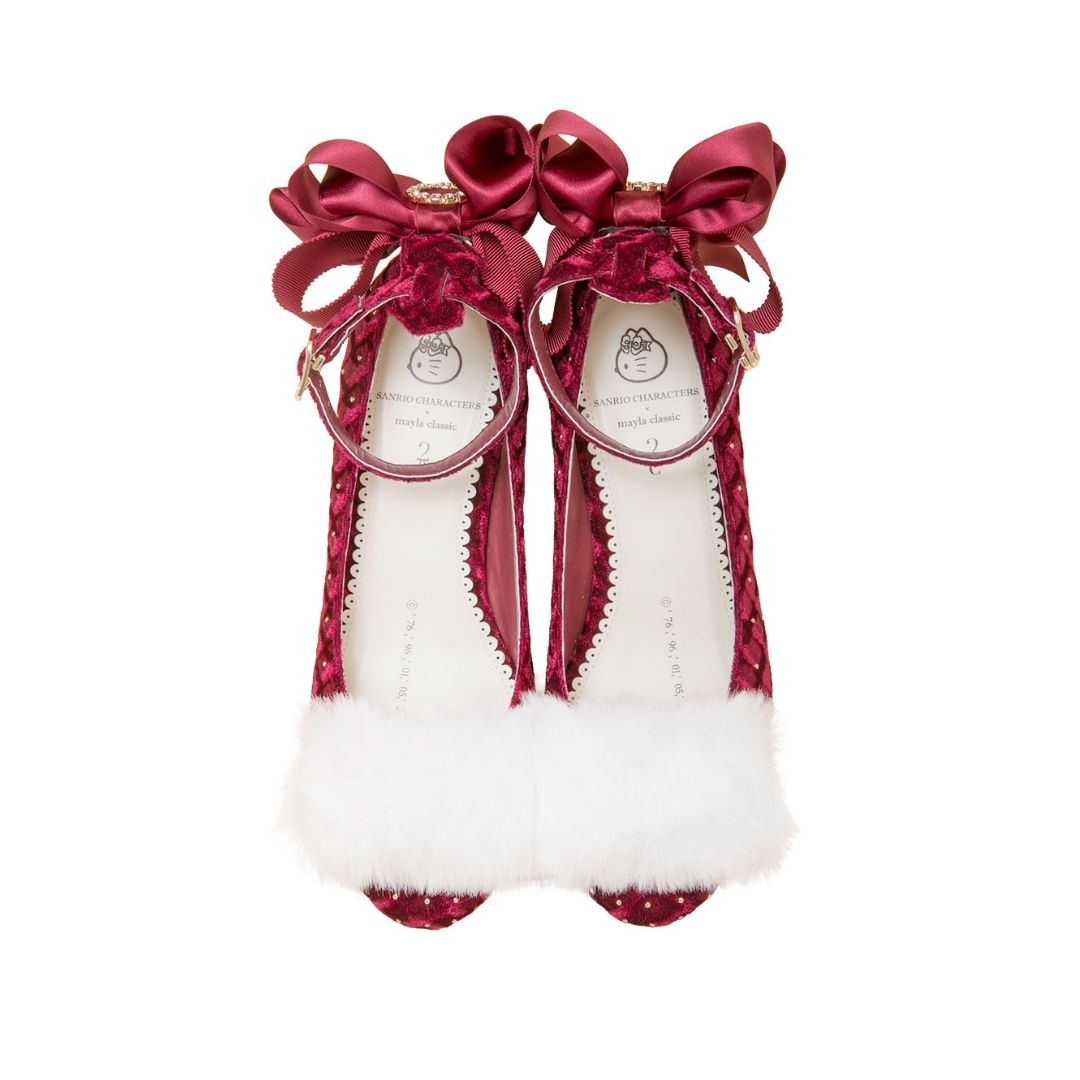 Sepatu MAYLA Sanrio Characters Famille menggabungkan desain imut Sanrio dengan kenyamanan velvet premium, dihias ribbon, rhinestone, dan charm karakter untuk gaya sehari-hari yang manis dan elegan.