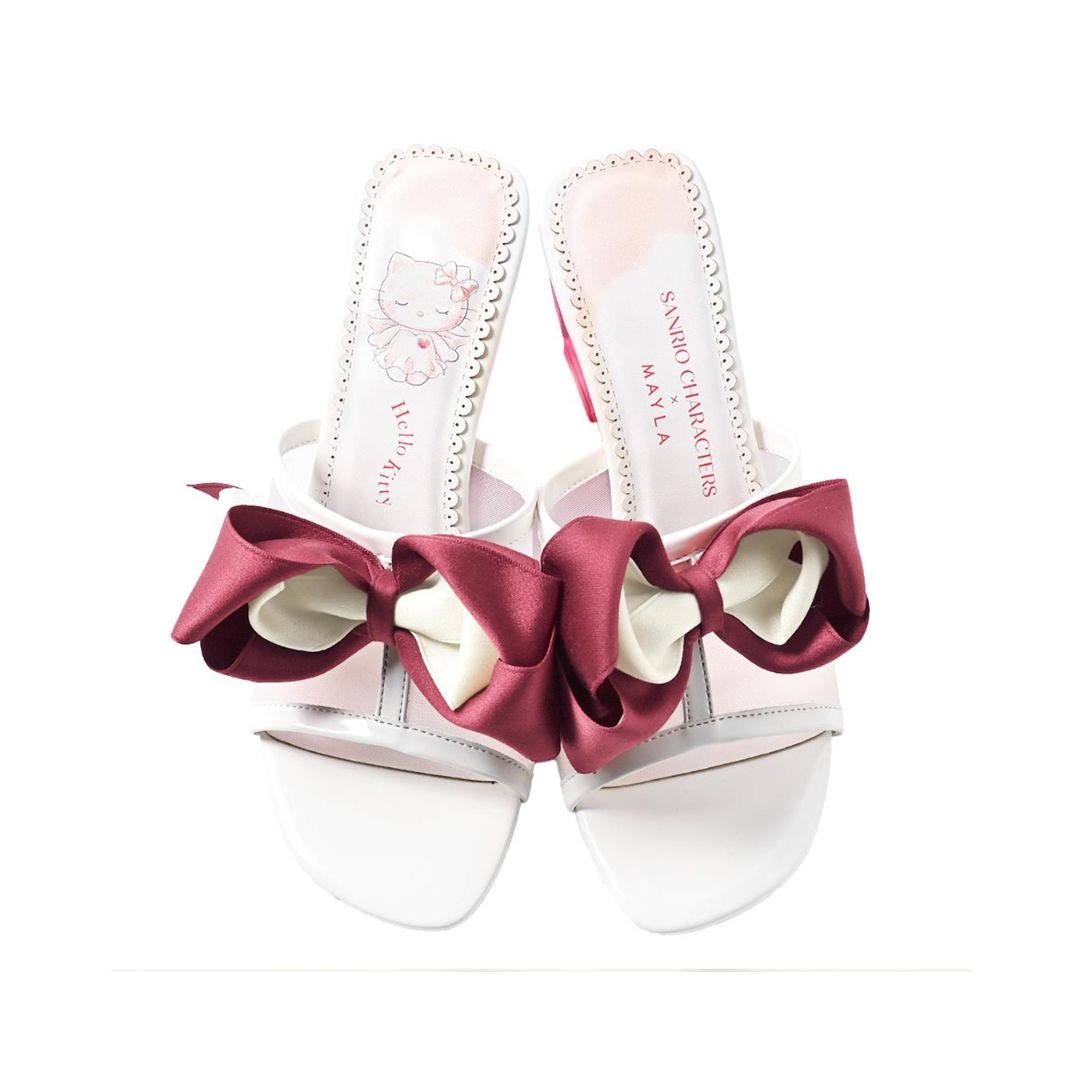 MAYLA Sanrio Hello Kitty Shoes Jewelry Mule memadukan karakter legendaris Hello Kitty dengan desain mule berhak tinggi yang anggun. Aksen ribbon dan jewelry memberikan sentuhan mewah, cocok untuk fashion statement tanpa terlihat kekanak-kanakan.