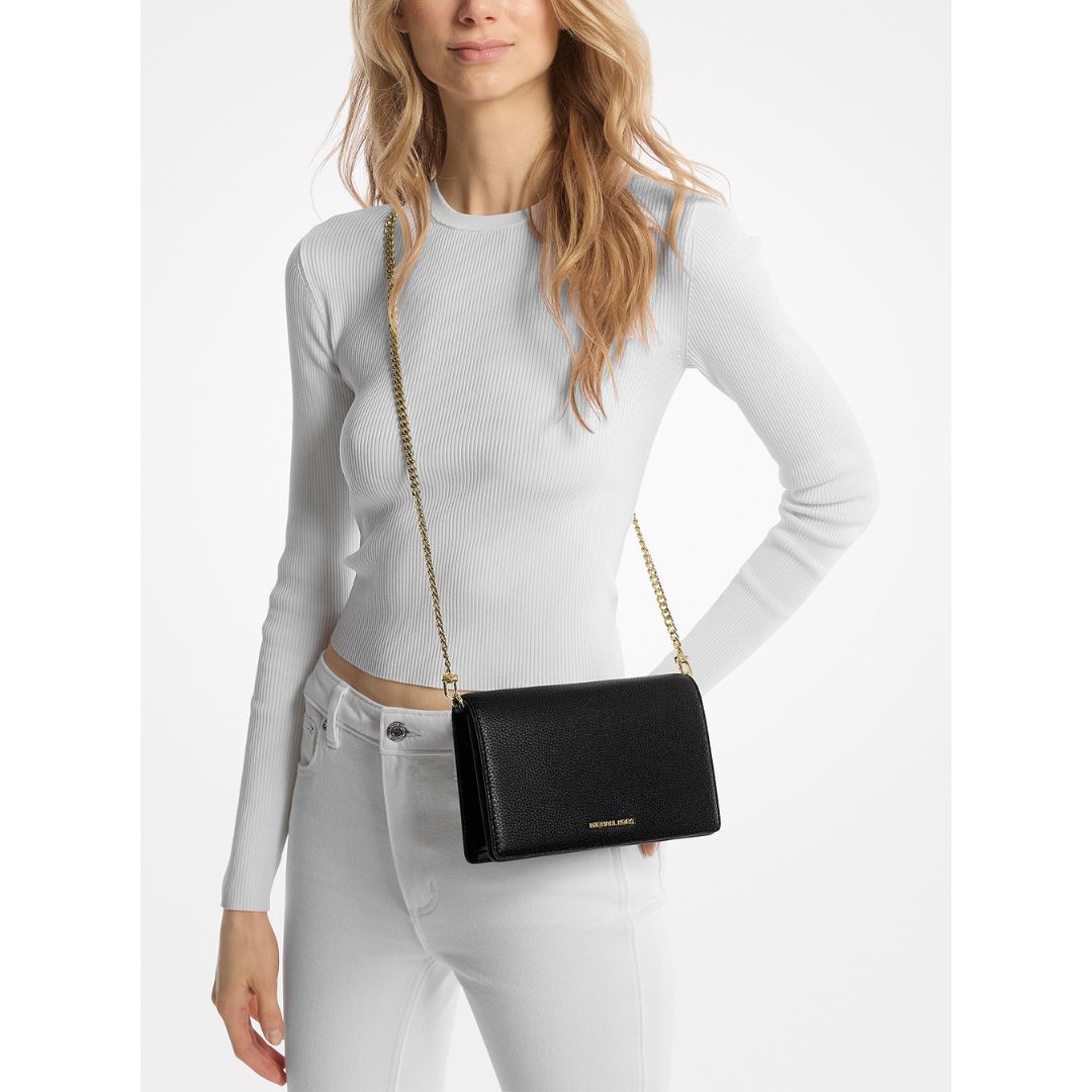 Michael Kors Jet Set Pebble Leather Crossbody Medium dirancang untuk menghadirkan gaya modern sekaligus fungsionalitas tinggi. Terbuat dari kulit pebble berkualitas dengan sentuhan chain strap yang berkilau, tas ini memiliki kompartemen dalam dengan resleting dan beberapa slot kartu untuk memudahkan organisasi barang.