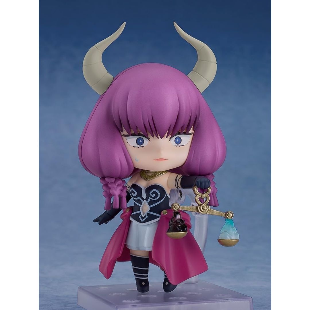 Nendoroid Aura dari anime Frieren: Beyond Journey’s End, hadir dengan ekspresi wajah unik dan aksesori seperti pedang dan balance of submission.